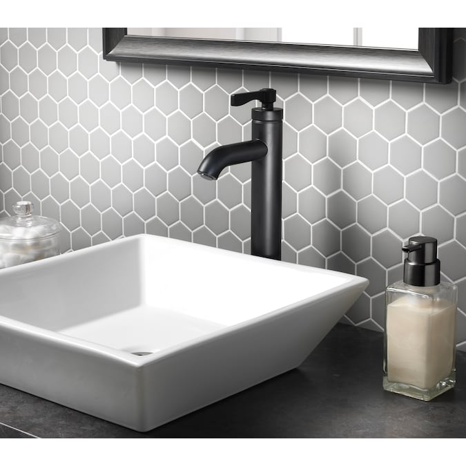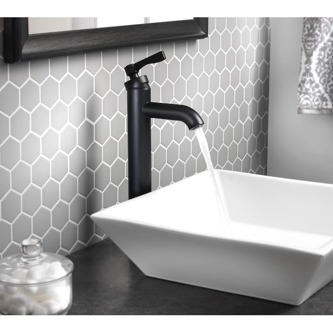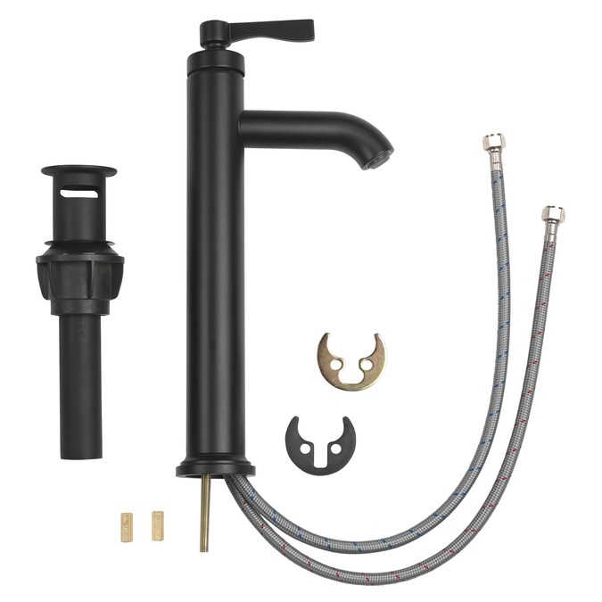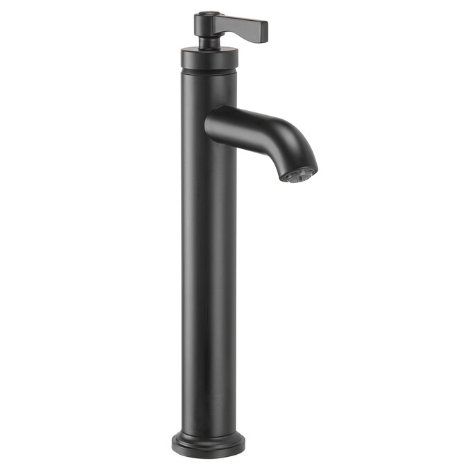 The Allen + Roth vessel filler bath faucet from the Townley collection combines a simple design with extreme durability. This bathroom faucet features a single handle lever handle that is ADA compliant, a sleek single hole installation, and a matching fixed grid drain. Built with a contemporary design, durable waterways, and a water conserving flow rate of 1.2 gallons per minute, this faucet easily updates your bathroom with a sleek style. A matte black finish provides a modern look. For a long lasting, high-end faucet, choose the Townley collection vessel faucet from Allen + Roth.