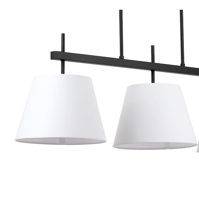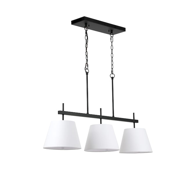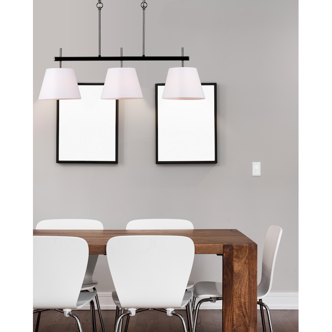 - Includes three white fabric shades