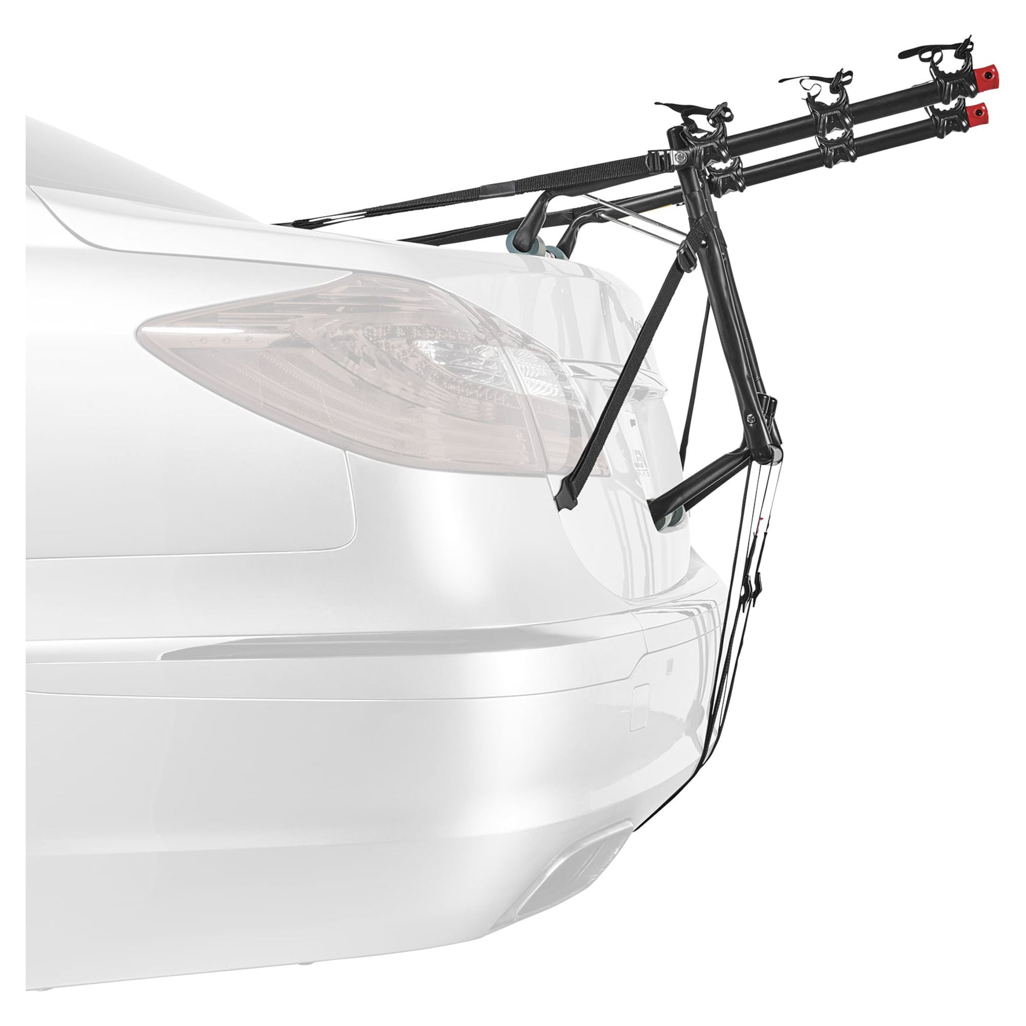 Take your bikes on the go with ease Lower frame is designed to keep bikes up and away from the vehicle Individual tie-down cradles are made to keep your bike secure and protected as you drive Sure strap lower strap assures that the bottom hook will stay in place while in use Great for sedans, hatchbacks, minivans, and SUVs Installs quickly and easily Holds up to 3 bikes Capacity: 100 pounds Carry arm width: 11.5 inches Color: Black Dimensions (L x W x H): 28.6 x 14.2 x 4.5 inches Weight: 10.4 pounds Warranty: Lifetime limited warranty