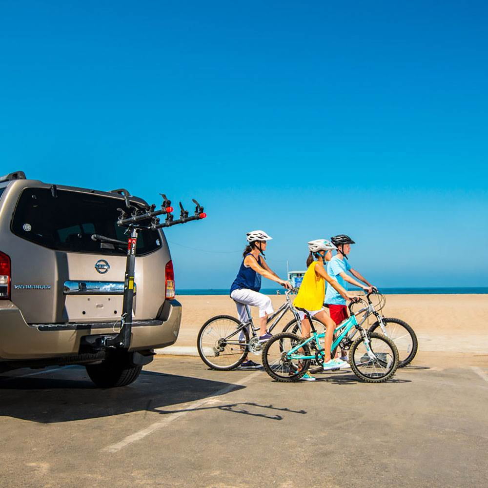 Carry up to four bicycles on road trips or camping excursions with the Allen four-bike carrier hitch. The hitch insert–which fits 2-inch receiver hitches–is easy to operate and super secure for your bikes. Just attach it to your hitch, then use the tie-down cradle system to individually secure and protect the bikes. The carry arm accommodates a wide range of frame sizes and designs, so you can carry your kid-size mountain bike or adult road bike with equal confidence. And you don’t have to remove your bikes to access the back of your truck or SUV, as the rack tilts back for easy lift-gate access and folds out of the way completely when not in use. Also equipped with a no-wobble bolt to keep the rack from moving inside the hitch, the four-bike carrier is colored with a black powder-coated finish. Quick assembly and easy install with only three bolts needed to assemble your Allen Deluxe Hitch Rack, your rack will be out of the box and have you on the road in minutes.