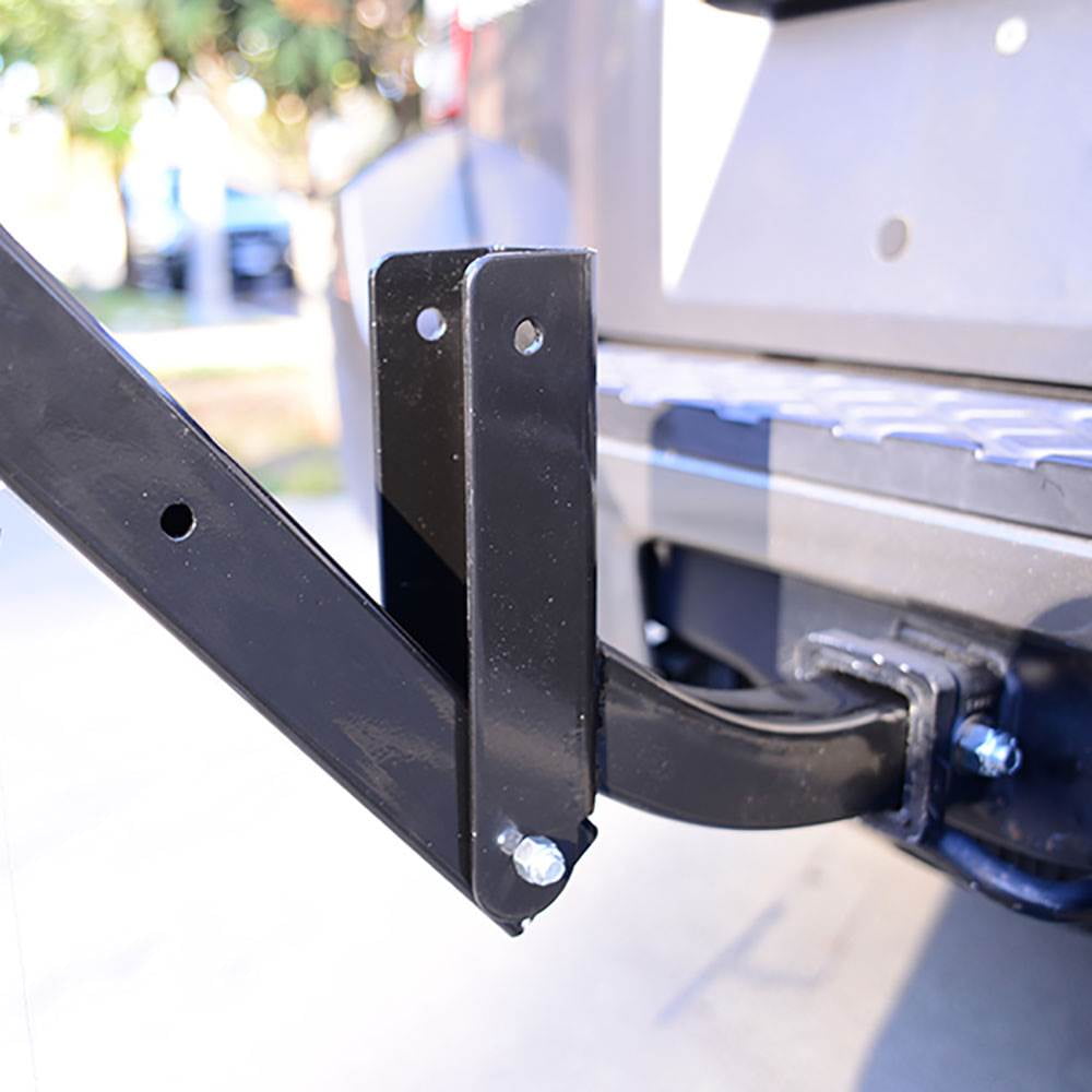 Trailer Hitch 4-Bike rack mounts easily to 2-inch trailer hitches Includes No-Wobble Bolt which secures rack inside of receiver hitch with a movement-free installation Arms fold out of the way when not in use Rack tilts back away when needed Individual tie-down cradles with quick-secure straps protect your bicycles during transport Accommodates a wide range of bicycle frame design Minor assembly required, all hardware included Crafted with durable powder-coated steel for protection from the elements Holds up to 4 bikes (140 pounds) The rack can be shifted back with only one hand Wobble-free bolt installation eliminates movement Includes locking loops to keep your bikes secure The rack should only be used with Class III or IV 2-inch receiver hitches Never use on the trailer or the front of your vehicle Carry arm length: 22 inches Weight: 22.1 pounds Color: Black Manufacturer Warranty: Limited Lifetime warranty