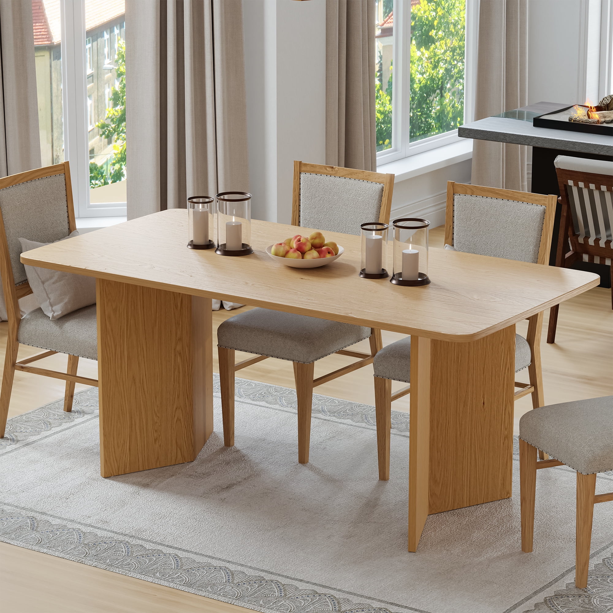 Allison Drop Leaf Round Dining Table Natural Brown and White Table Only