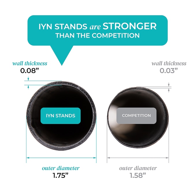Create instant ambiance by hanging string lights indoors or outdoors using durable IYN (Illuminate Your Night) String Light Pole Stands. Easily hang string lights for backyards, grass areas, patios, decks, restaurants, weddings, events and more. A tank stand can be set up and taken down with no hardware being attached to the surface it stands on. The tank stand is filled with water or sand and can be placed anywhere, outside or inside. The heavy-duty powder-coated steel poles are 9 ft 6 in tall when assembled and allow you to hang G40 bistro string lights in spans up to 20’ between poles. Each pole comes with an eyebolt and carabiner clip to secure string lights at the top. IYN string light poles are built to last and feature commercial grade quality. USA designed and patented. Comes with pole and tank (items ship separately). Pole 9ft 6in length x 1.75in diameter / Tank 17in tall x 16in diameter