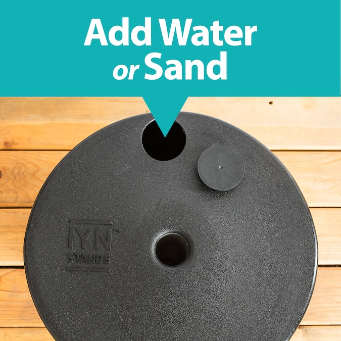 - Tank stand (17in tall and 16in diameter) can be filled with water (approximately 123 lbs.) or sand (approximately 186 lbs.) and features a filler cap and internal metal sleeve.