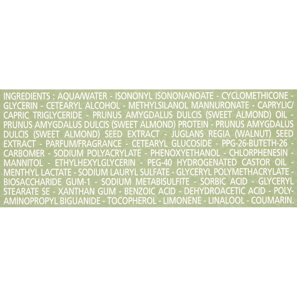 The powerful combination of almond milk and almond oil moisturizes and softens the skin while a new complex of walnut seed and almond smoothes the skin.