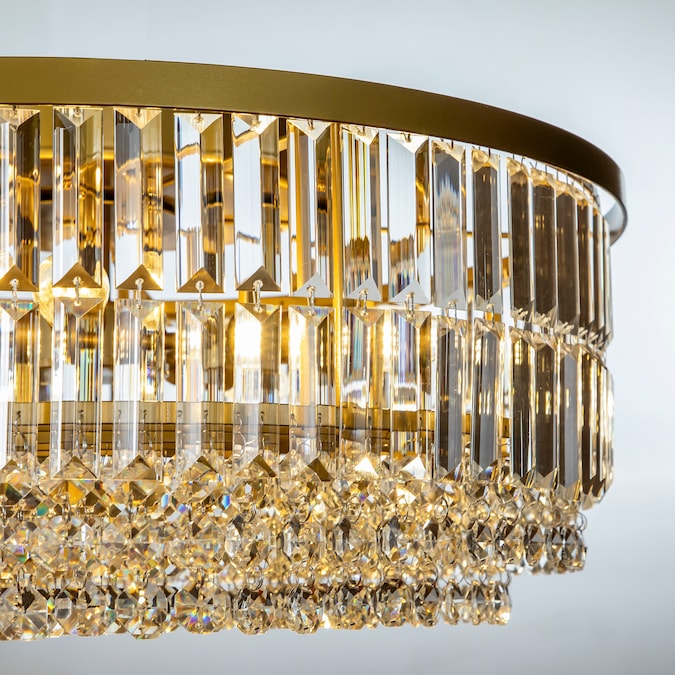 - Cascading crystals adorn this dazzling flush mount ceiling light