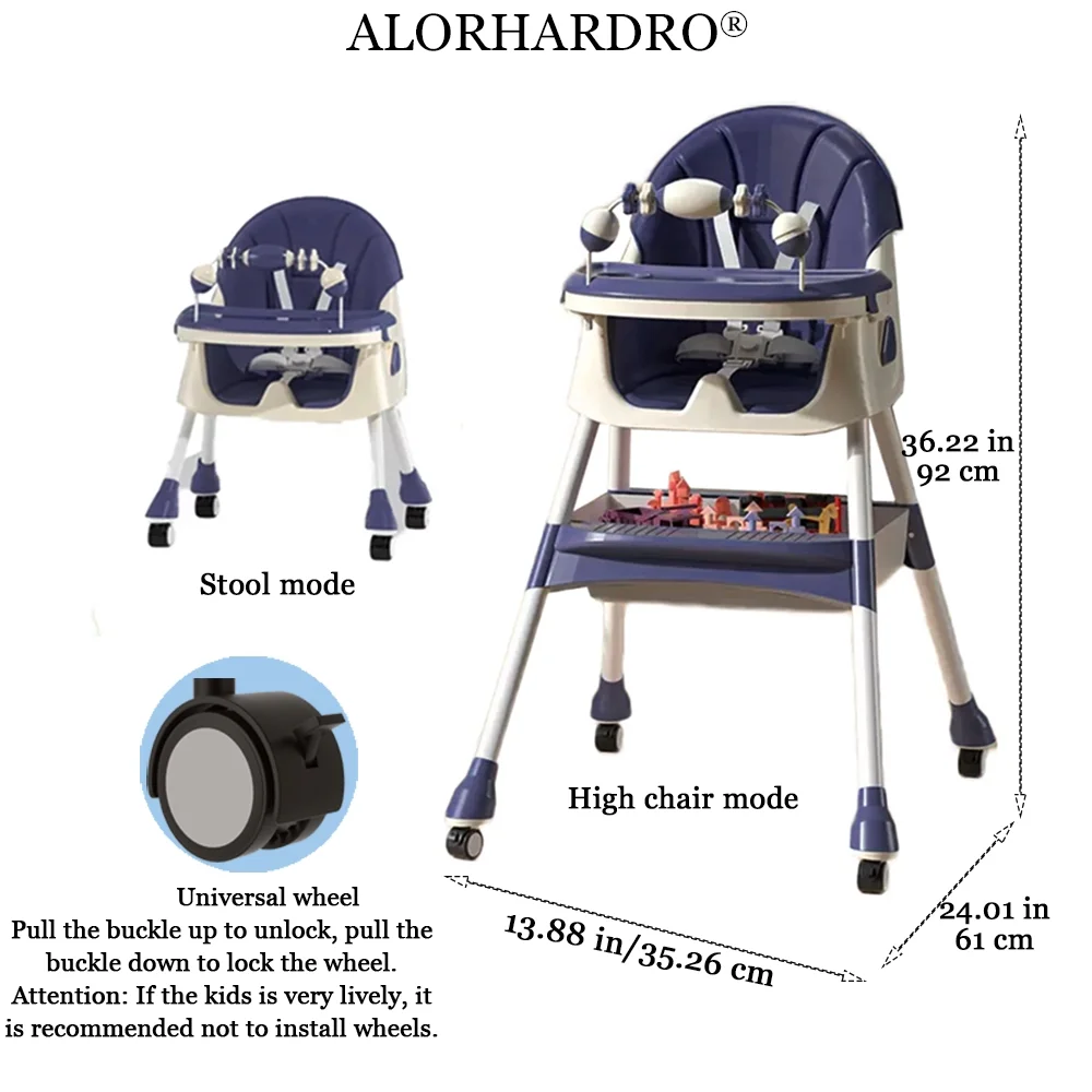 ALORHARDRO 4-in-1 Convertible Baby High Chair for Babies and Toddlers, Toddler Chair, Booster Seat for Infant to Toddler, Foldable, Blue