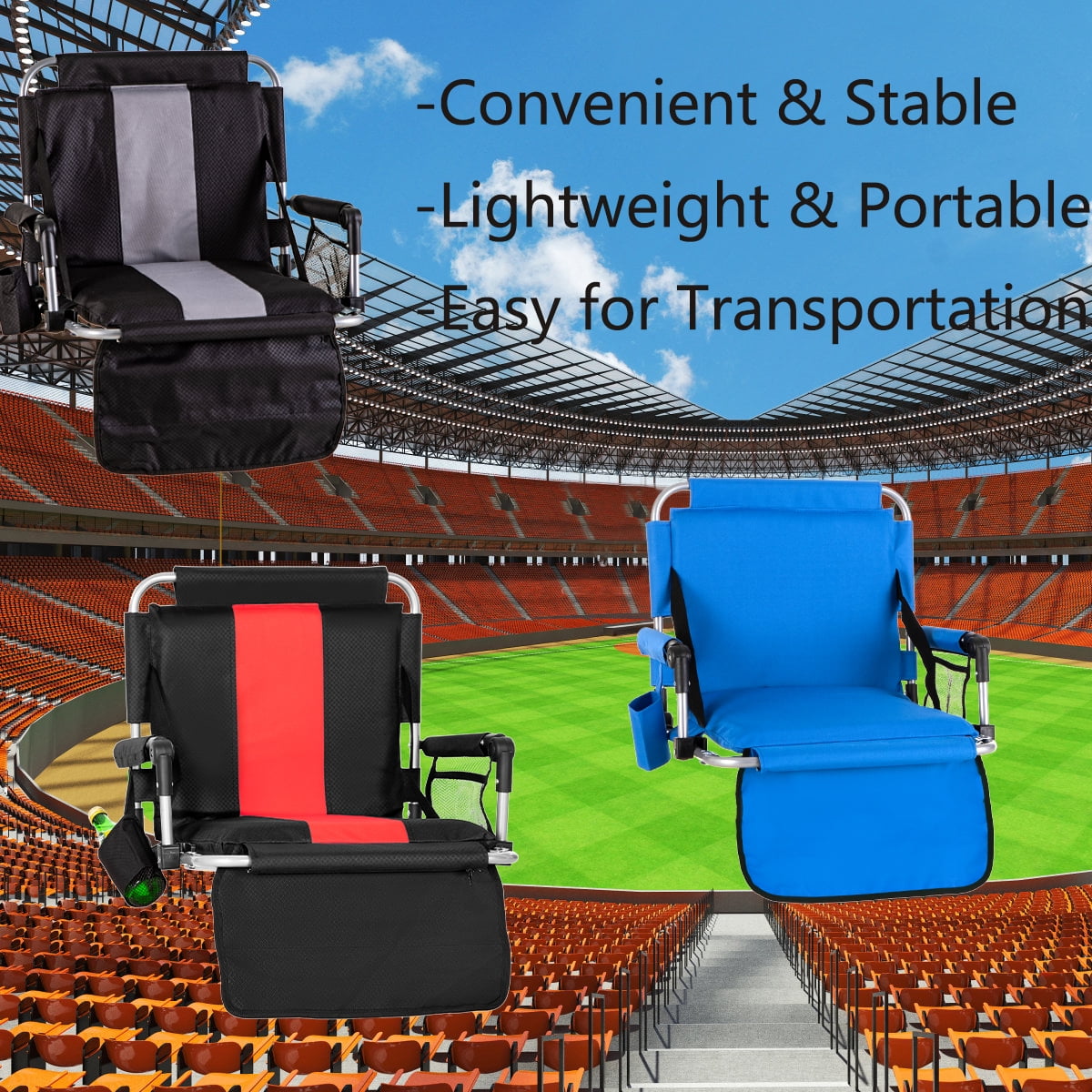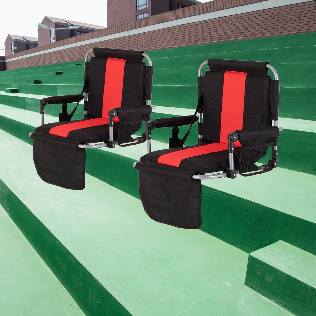 Alpha Camper Folding Portable Stadium Seat Chair for Bleachers with Arm Rest, Black Red