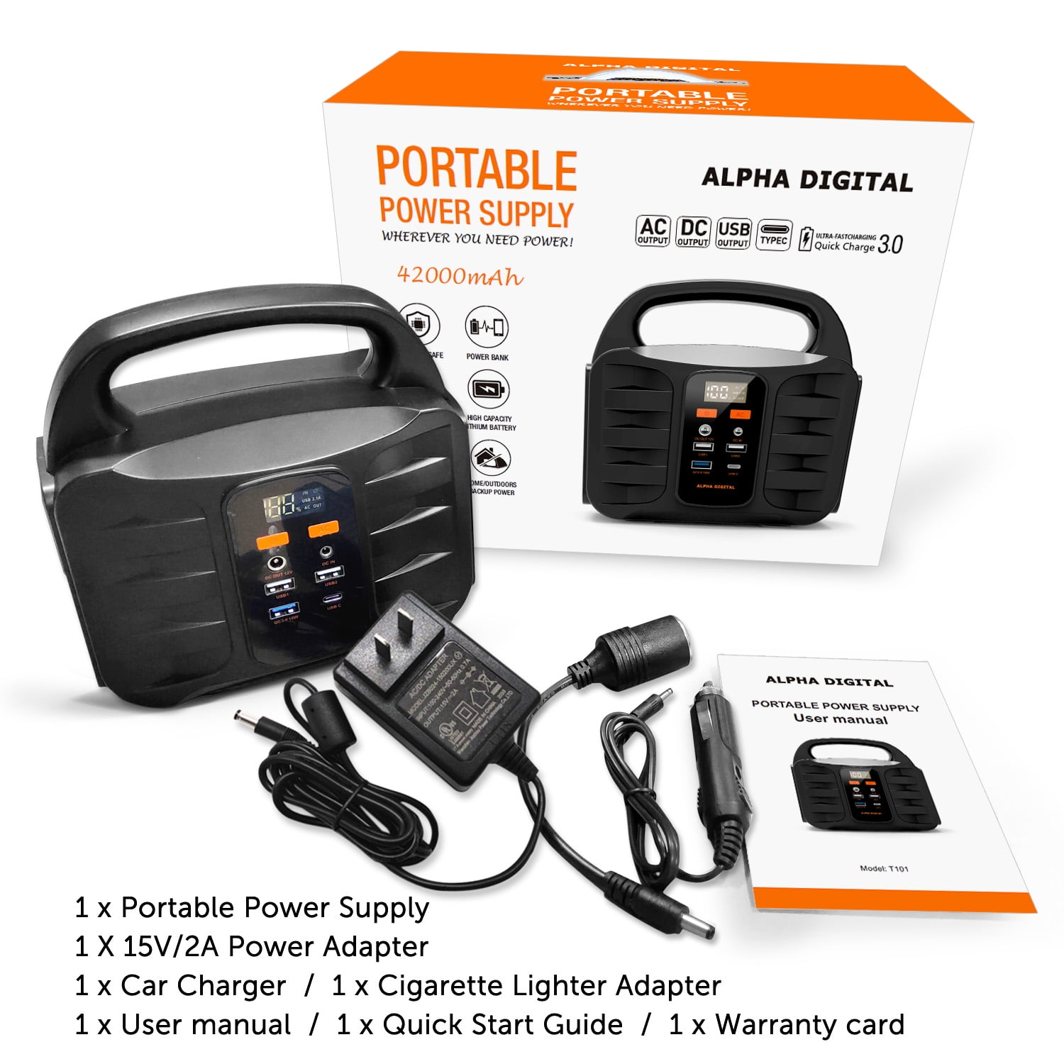 Alpha Digital – Portable Power Station, 155Wh/42000mAh, Rechargeable Emergency Battery – 6 Ports: A/C / USB / DC