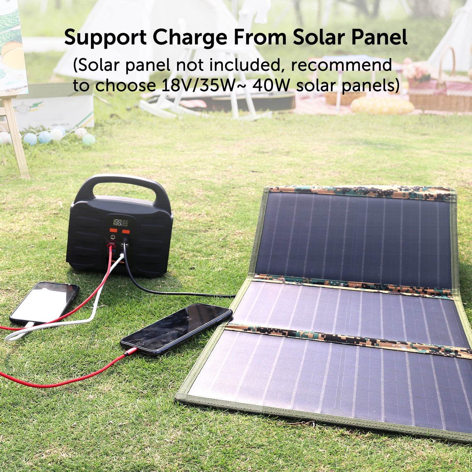 On-the-go Generator: It offers 155Wh 42000mAh of power capacity, provides power for laptops, camera batteries, TVs, fans, CPAP machines working time depends on its output power and other small appliances. Built-in LED Flashlight with SOS mode. Integrated Digital display for charge and discharge and battery life status Multi-Output and Rapid Charging: 4 USB charging ports 2 Quick Charge 3.0 USB port, 2 2.1A USB ports detect your devices to deliver its safest maximum charge speed up to 3A. Featured with 1 AC power outlets 110V/100W for optimal versatility. Simultaneously power up to 6 devices Recharge in 3 ways easily: This power station can be recharged through an AC outlet using the included AC adapter, Charge from solar panel Solar Panel not included, or Charge from your car with a 12V cigarette lighter. On the wall, you can recharge the power supply by AC outlet. When driving, recharging is super-easy by 12V cigarette lighter for 11 hours. And built-in MPPT helps it recharged under sun with solar panel Multi-Safety protections: Safety Protection including Over charge protection, Over Release Protection, Over Current Protection, Short Circuit Protection, Over Power Protection, Over Temperature Protection. 5. Portable & Compact: Super slim size 7.32 x 7.09 x 4.21 inches and lightweight 3.42lbs. The portable power station with a compact handle design is not only for emergency backup power at home, but also for camping or wherever you need power when you are on the go Output wattage: 100.0 watts