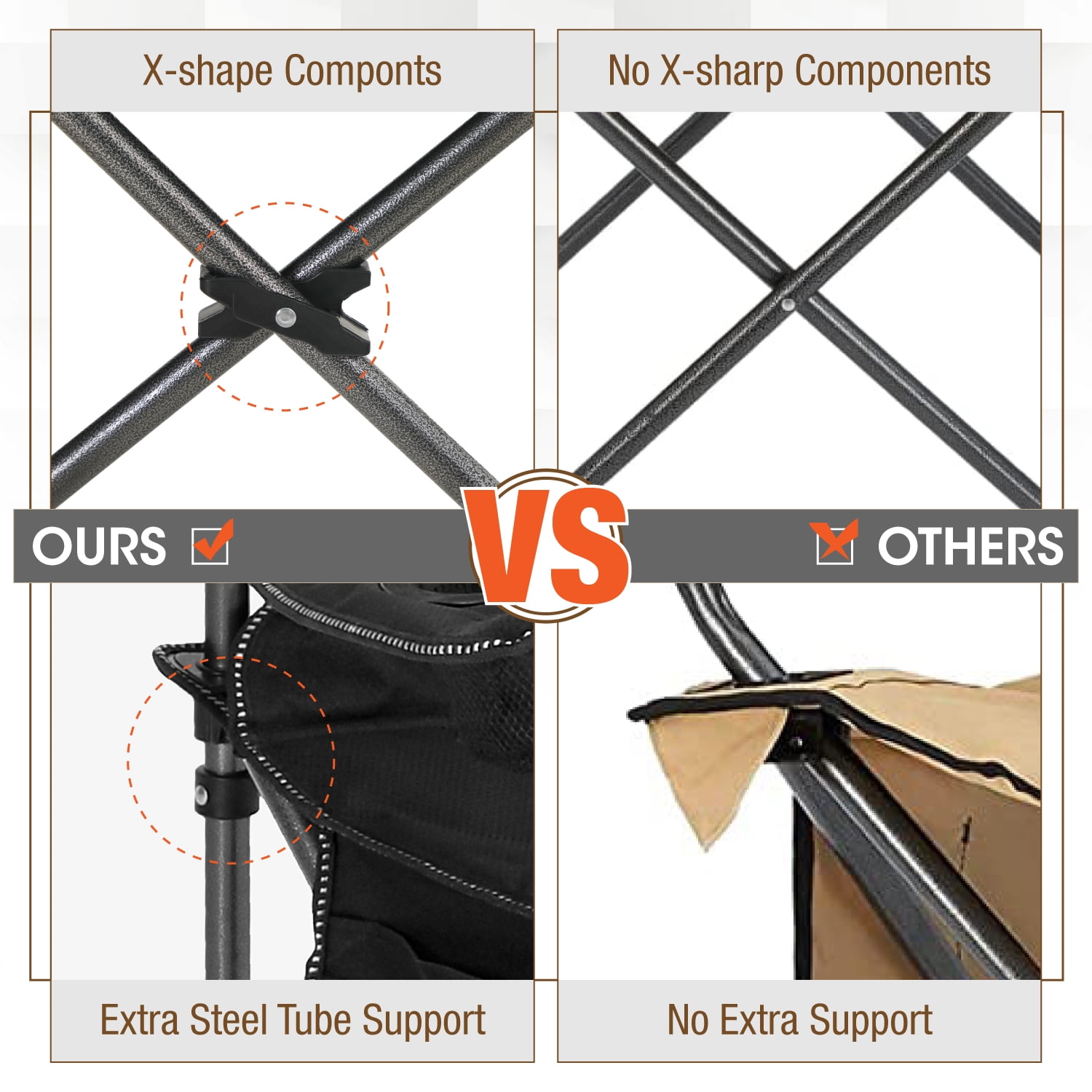 Alpha Joy Foldable Camping Chair Oversized Padded Heavy Duty Portable Quad Chair with Cooler Bag & Cup Holder, Black