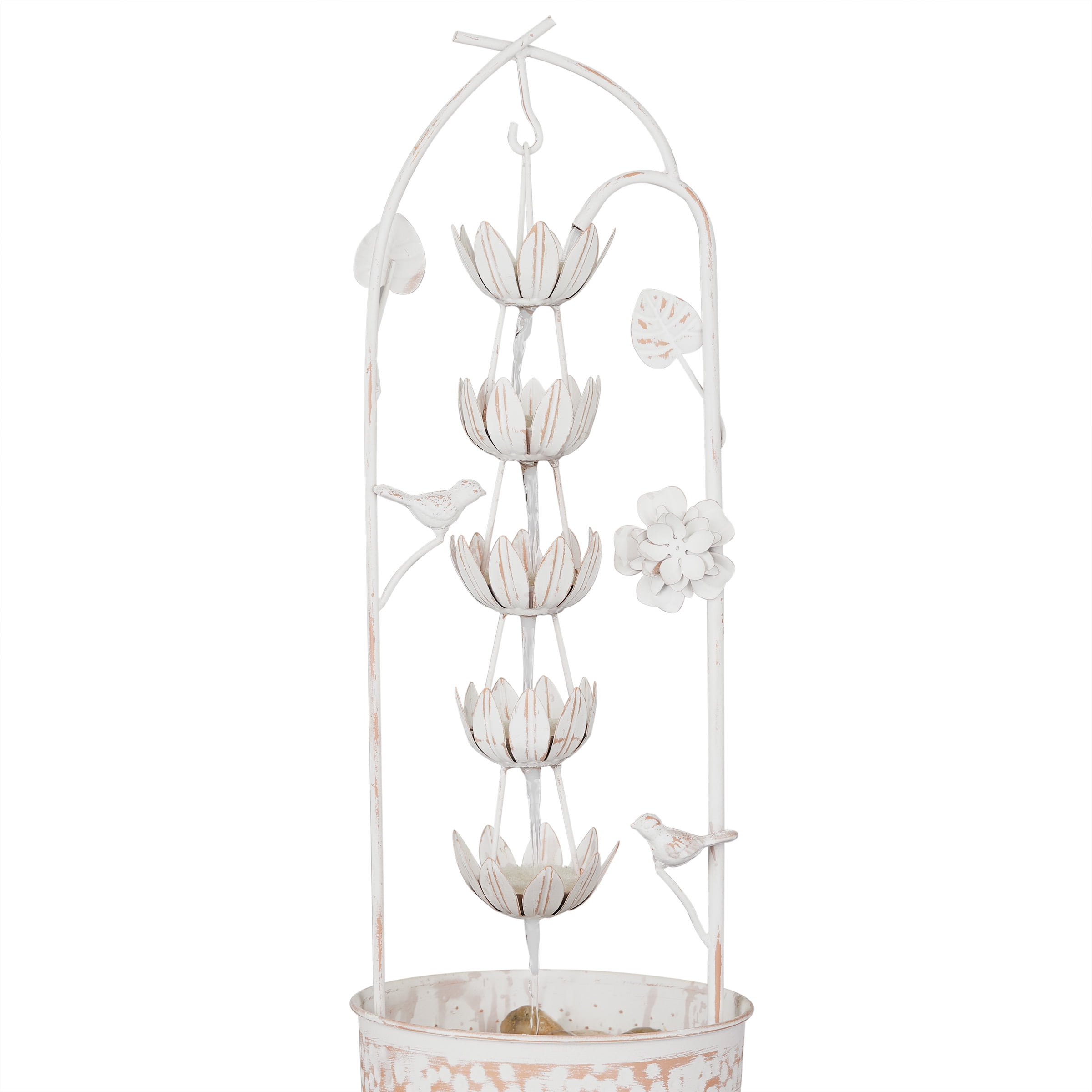 Alpine Corporation Metal White Rustic Outdoor Electric Fountain with Flower