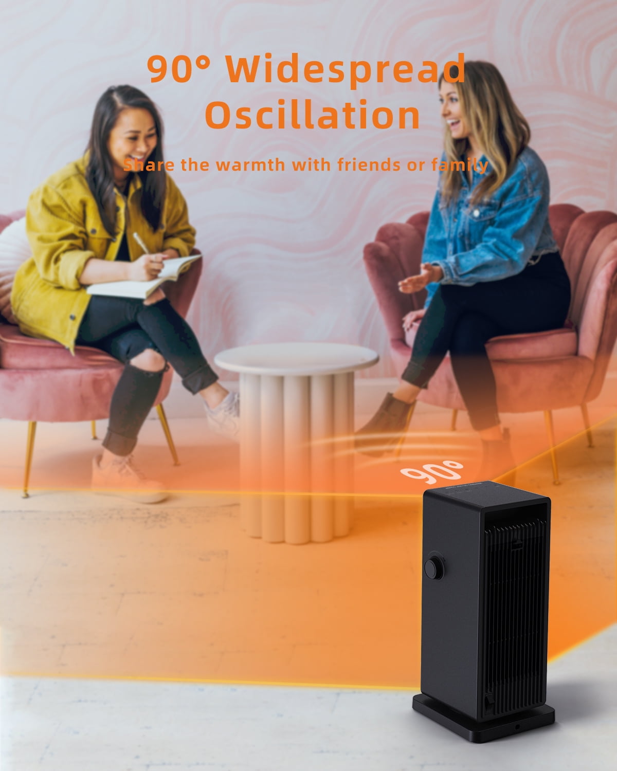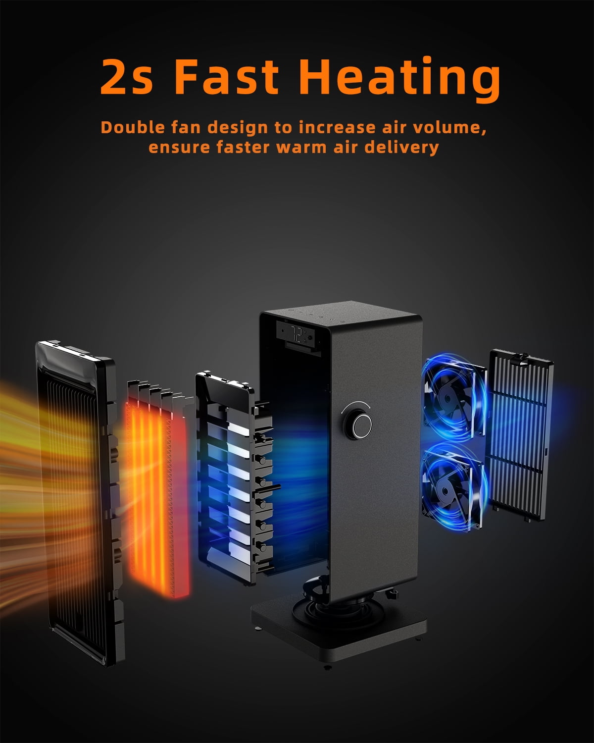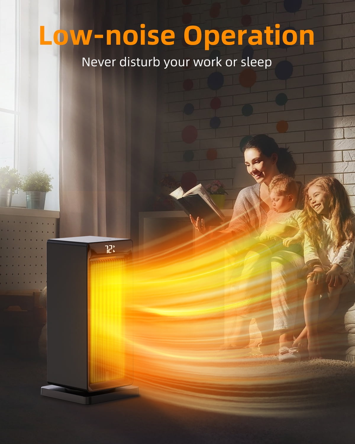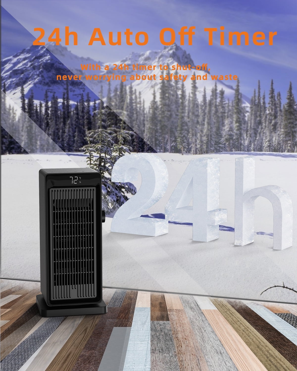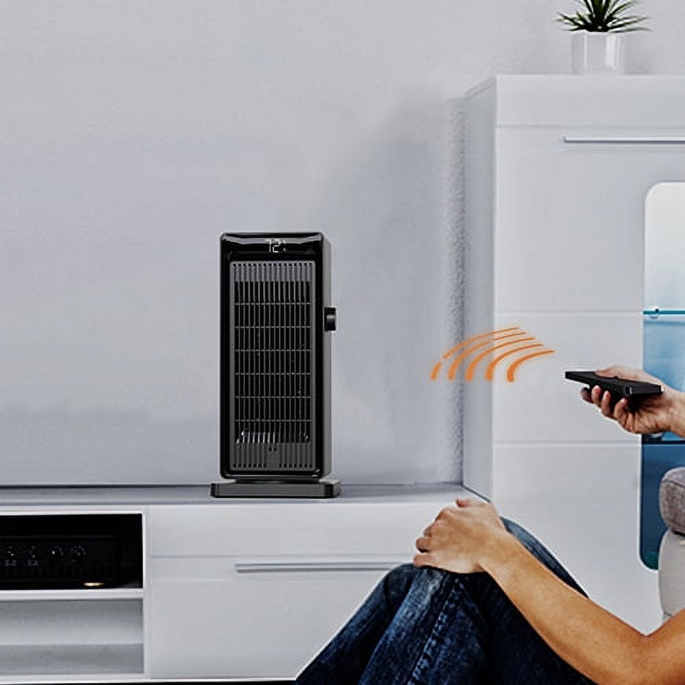 Adjustable ECO thermostat This feature helps you conserve energy because this space heater only runs when the temperature falls below the number you choose. This means it won’t run constantly, further reducing the risk of a fire situation and greatly saving your electricity bills. Aesthetic decor for homes/office You’ll be living with space heaters for months at a time in highly visible parts of your home, and we think you may as well have something nice to look at. Our space heater have a black exterior with fashion appearance, bringing a de-stressing effect while fully matching your decorating style. Save energy with the ECO mode If you set a temperature range from 59-99°F, the digital thermostat will compare the room temperature and settemperature automatically to optimize energy consumption: If the room temperature around the space heater rises above the temperature you set, it will stop heating automatically and then enter in stand-by mode, when the surrounding temperature belows the set temperature, it will continue working to provide warmth, in this way to optimize energy consumption. 1°F increments The wide temperature range available (from 59°F to 99°F in 1-degree increments) gives you more options for heat control, just enjoy the desired Temperature you like with this space heater. Year-around use This space heater features low/high/fan only modes to satisfy your heating and cooling needs, it’s wise for you to choose a year-around equipment and save money. Warmth at ideal time Set a specific number of 24 hours to turn off automatically, never worry about forgetting turn off the space heater, which helps you save energy and keep safe.