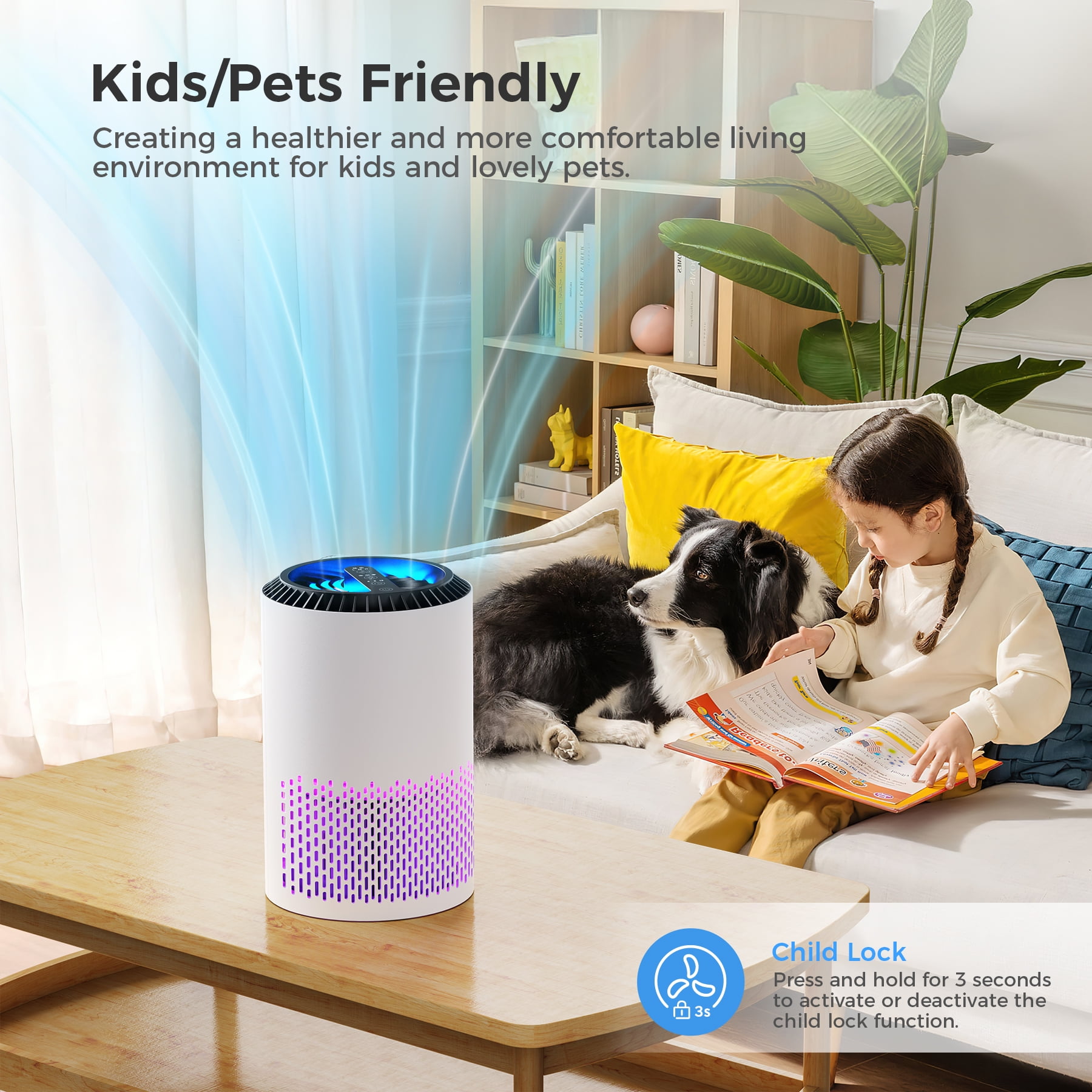 Compared to other air purifiers, JH01 combines HEPA Filter and Light to improve its purification performance. It can effectively purify the air by filtering particles as small as 0.3 microns and air pollution of PM 2.5. Most tiny objects indoor can be eliminated quietly. Less energy-consuming, adjustable wind speed, pleasant aroma added, and easy-to-replace filter, together make the product more durable and competitive. Designed for large spaces, the ALROCKET HEPA Air Purifier effortlessly transforms your room into a sanctuary of pure air. Say goodbye to dust, pet dander, and unwanted odors that can compromise the quality of your living or working space.