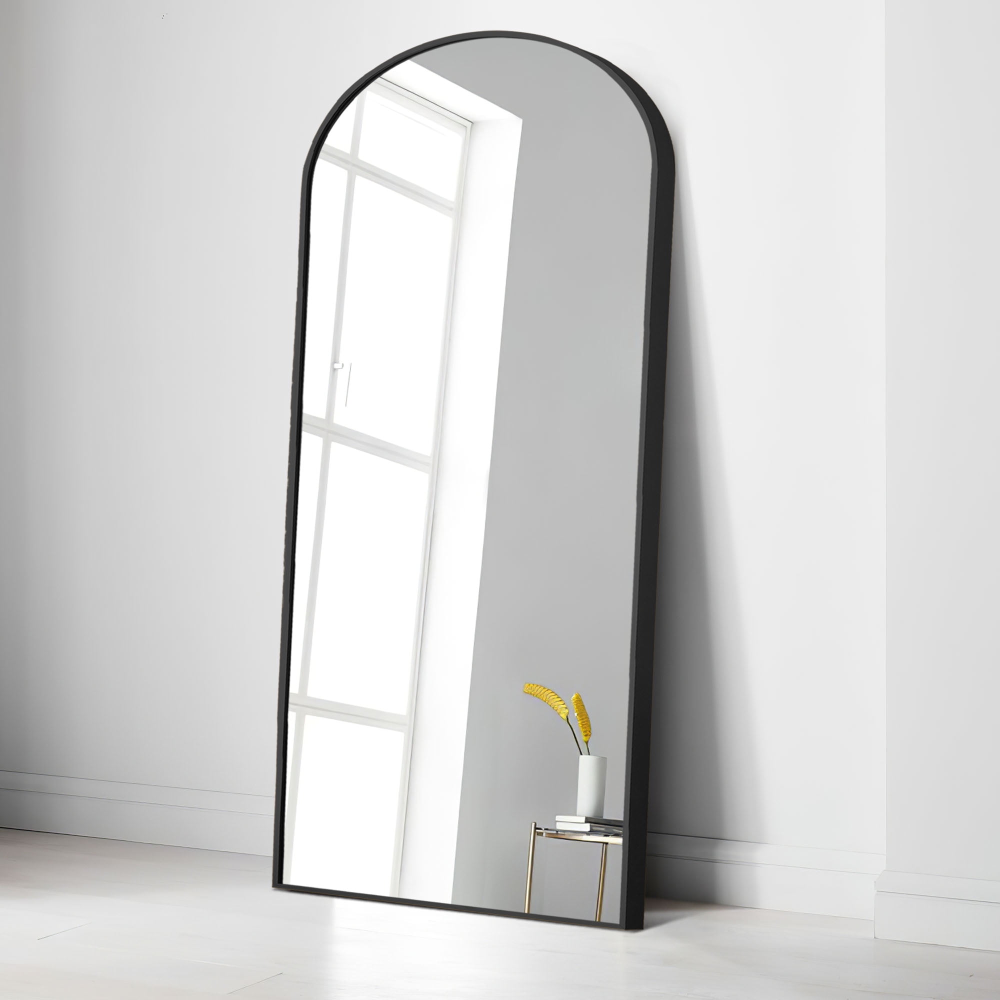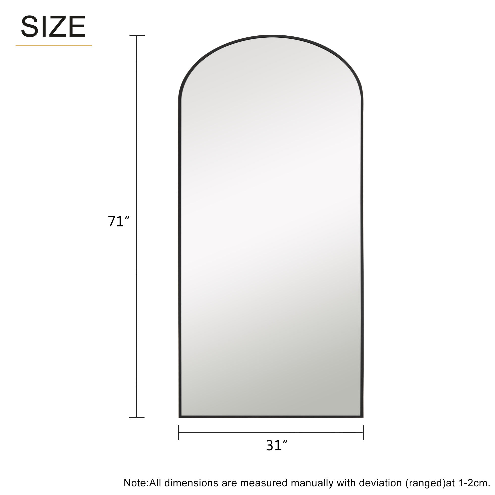 Aluminum Alloy Thin Frame:This Full-Length Mirror features an arch-crowned silhouette and ultra-aluminum alloy thin frame, complements all your home decor, and brings your room style and elegance. Blast-resistant Glass: The decorative mirror is coated with silver nitrate, anti-rust treatment, no oxidize and rust, more HD. Copper-free silver mirror, environmentally friendly. Shattered glass will not be spilled out even impacted by external force, more safer and protective. U-shaped Bracket: Free stand anywhere with a sturdy U-shaped bracket. Detach the bracket simply, lean against the wall. Arched Top Frame:The top of the mirror is designed with a seamless arched top frame, like a door. The design will be the most eye-catching in your room. It’s not only a full length dressing mirror but also an ornament. Widely Use: The full-length mirror can be freely hung on the wall, or on the floor for decor. That’s code for simple, well-designed, and wallet-friendly furniture and accessories. Find pieces for all spaces, styles, and spends across the collection, like a dressing room, bathroom, bedroom, living room dining room and entry.