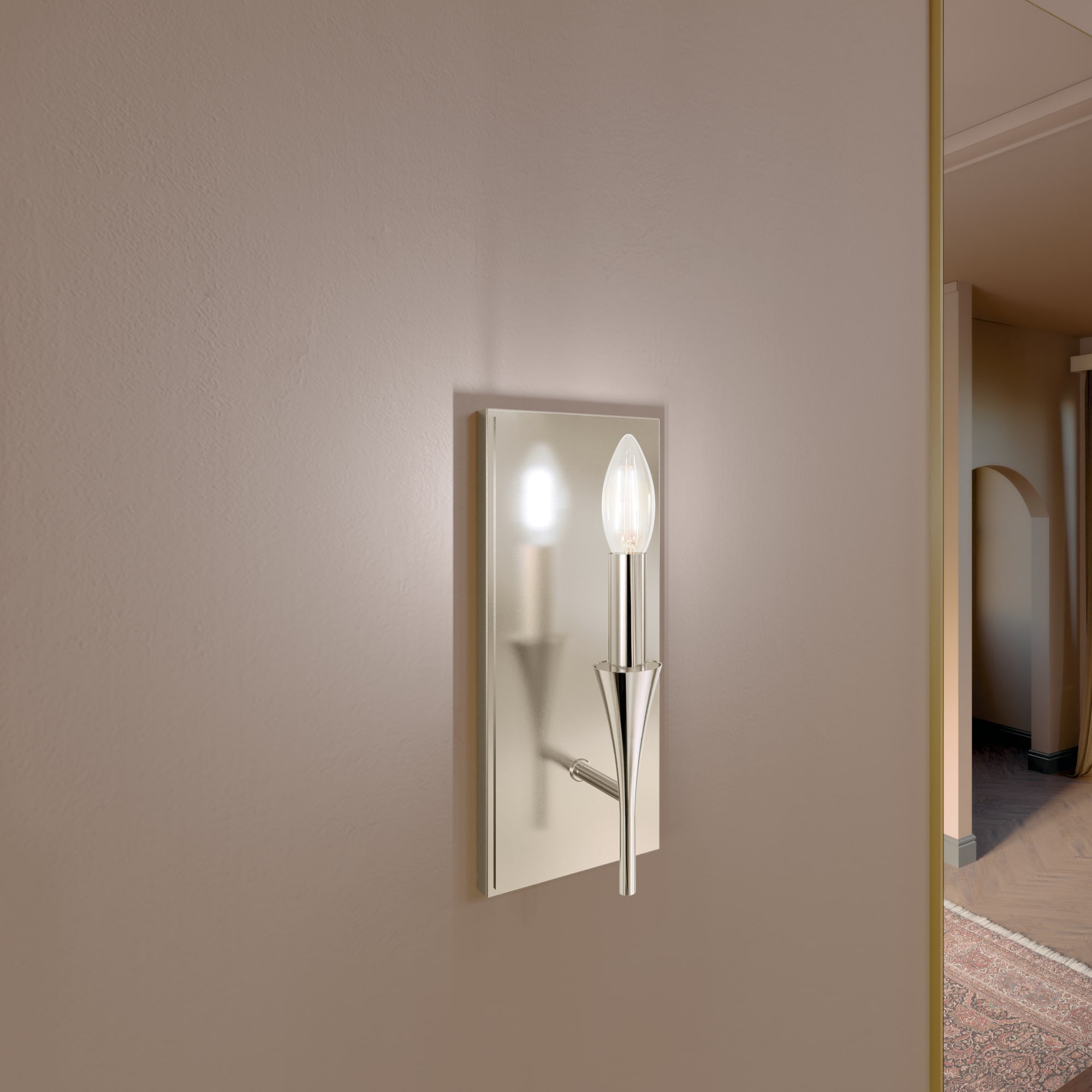 The Alvaro wall sconce features a simple silhouette and unique tapered accent. The bobeche flares out into the candlestick for a soft modern look. Minimalistic yet interesting, Alvaro is the perfect accent.