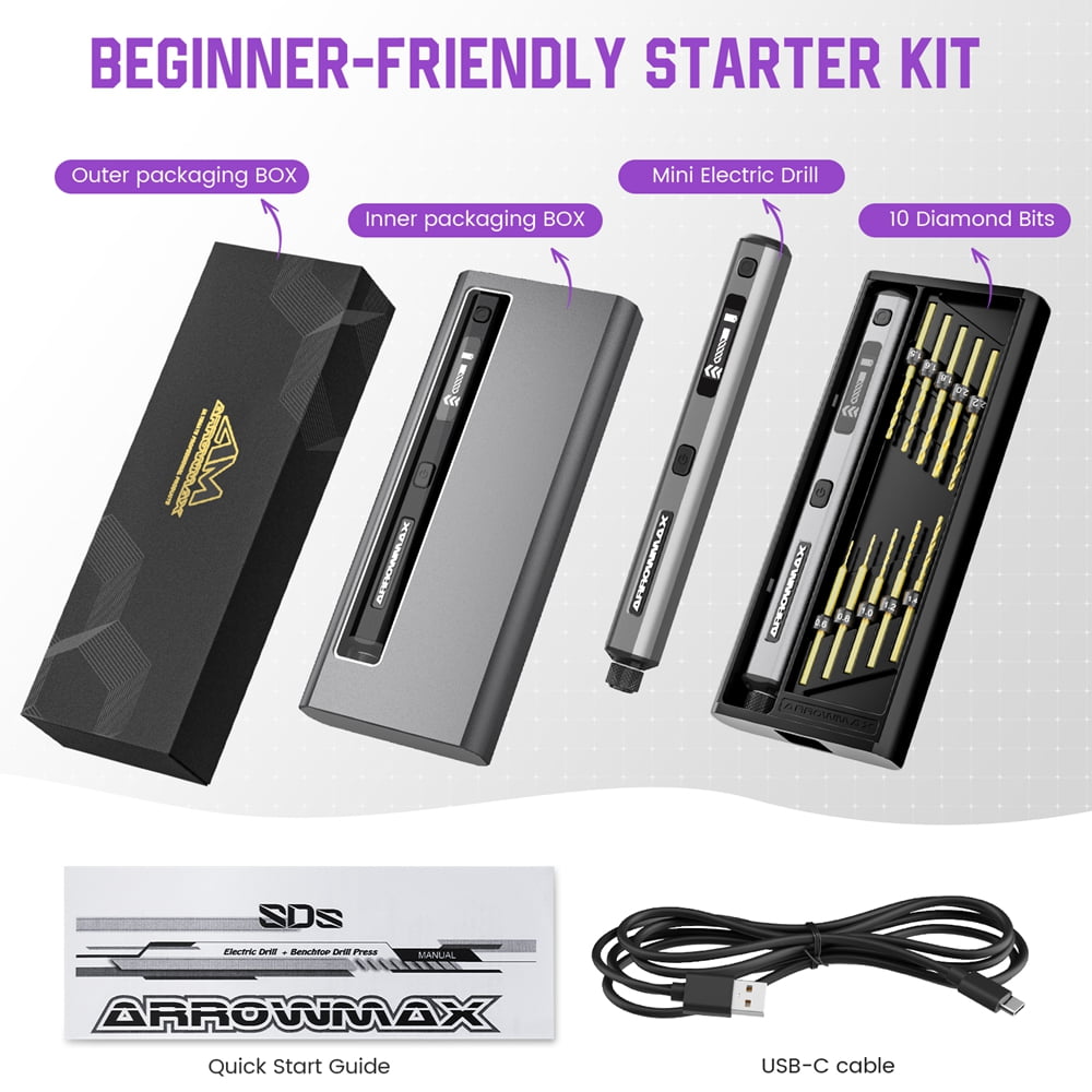 AM ARROWMAX Mini Electric Drill Rotary Tool Rechargeable Cordless Drill for Crafts Wood Plastic Aluminium Coin Home DIY SDS