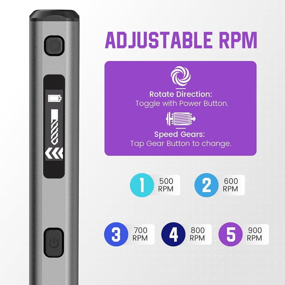 Product list: (1x) Electric Drill Pen (1x) Aluminum alloy storage box (1x) Manual (1x) Type-C USB cable (10x) Drill Bits