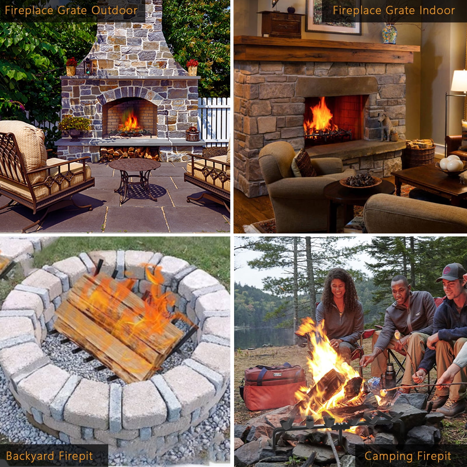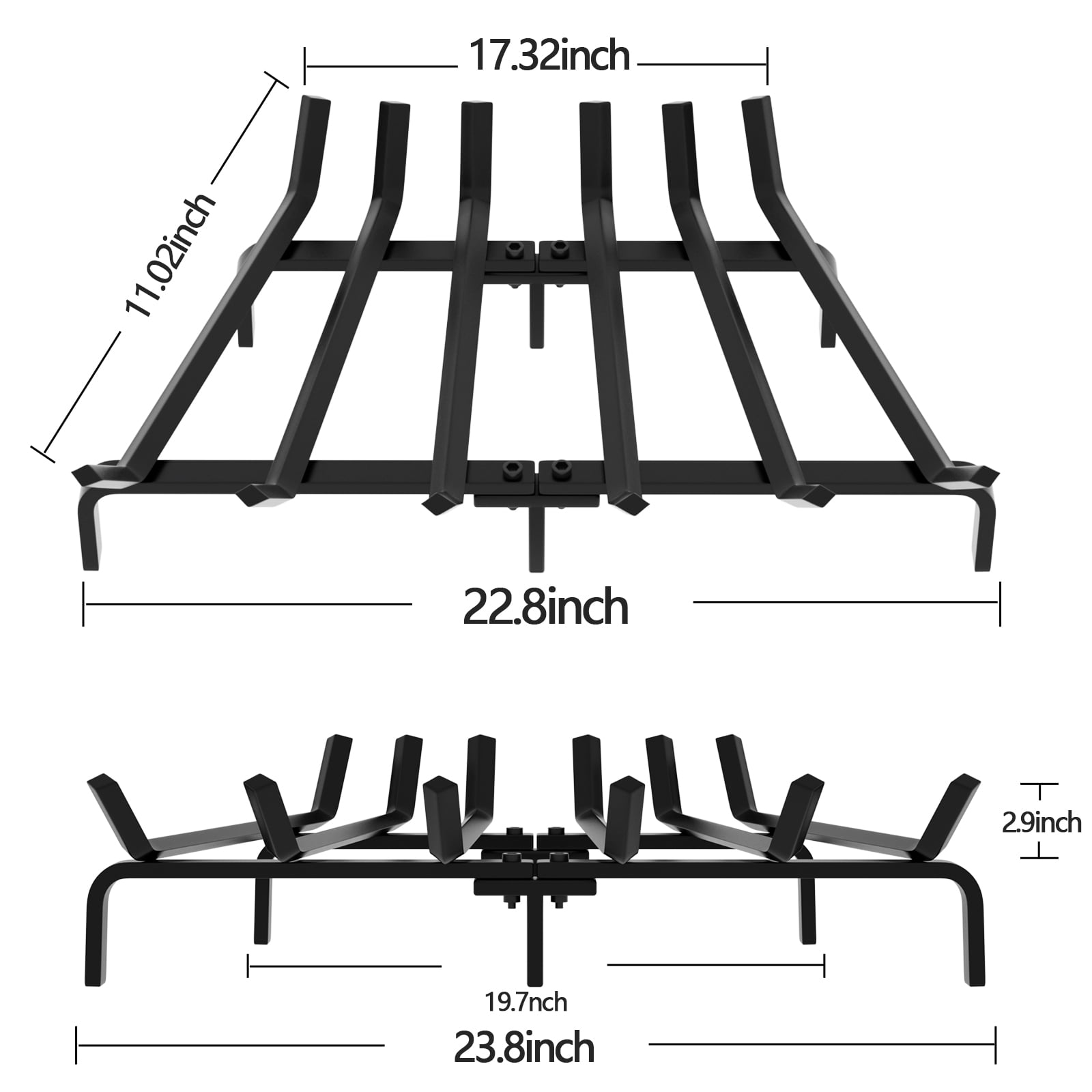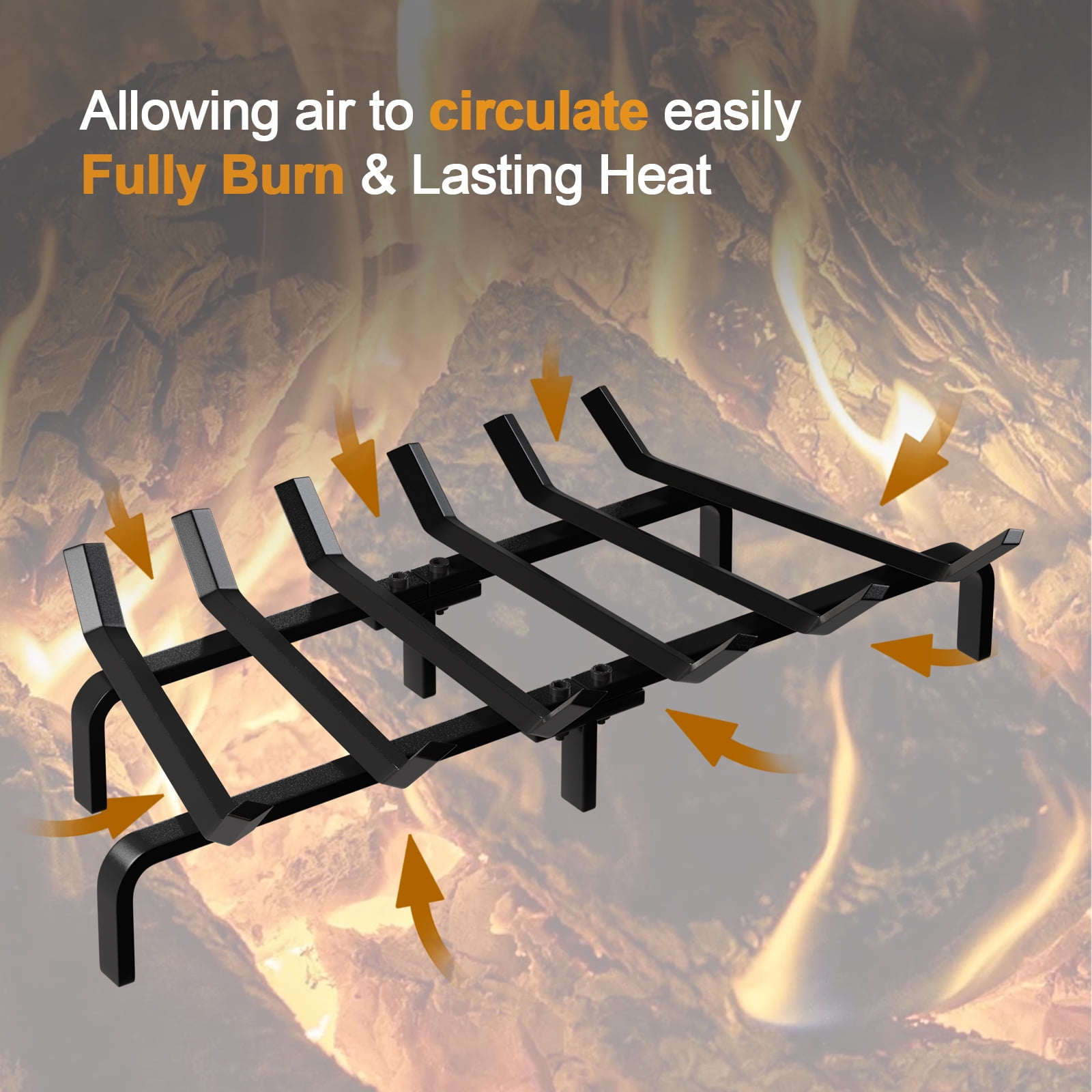 Daily burning: Fireplace log grate decorative measures 24in long x 11.25in wide x 7.5in high, liberty foundry fireplace grate clears 4in under wrought iron crossbar. lift the firewood off the chimney floor and hearth allowing air to better circulate. Thick steel structure fire place log holder rack will last a life time. Thick steel construction:7 steel bars, V-shape fire wood rack hold fire logs and kindling close to fire white birch logs for easy lighting. Wide bars wood burning fireplace tools make it more surface and easier to hold wood, coal burning securely. Solid structure: 24 inch wrought iron firewood log buring grates is crafted from thick and solid 3/4 inch square bar steel. well made metal wood rack allows the air to circulate around the logs. No assembly required:This small sturdy, heavy duty fire place log grate suitable for both indoor decorative wood burning fire places and outdoor durable fire pit grate. Customer care: We are dedicated to provide premium products for you and offer impeccable customer care to you. Don?t wait any longer and just enjoy your ideal products today! Model Name:Fireplace Grates BG014;Weight:20LB