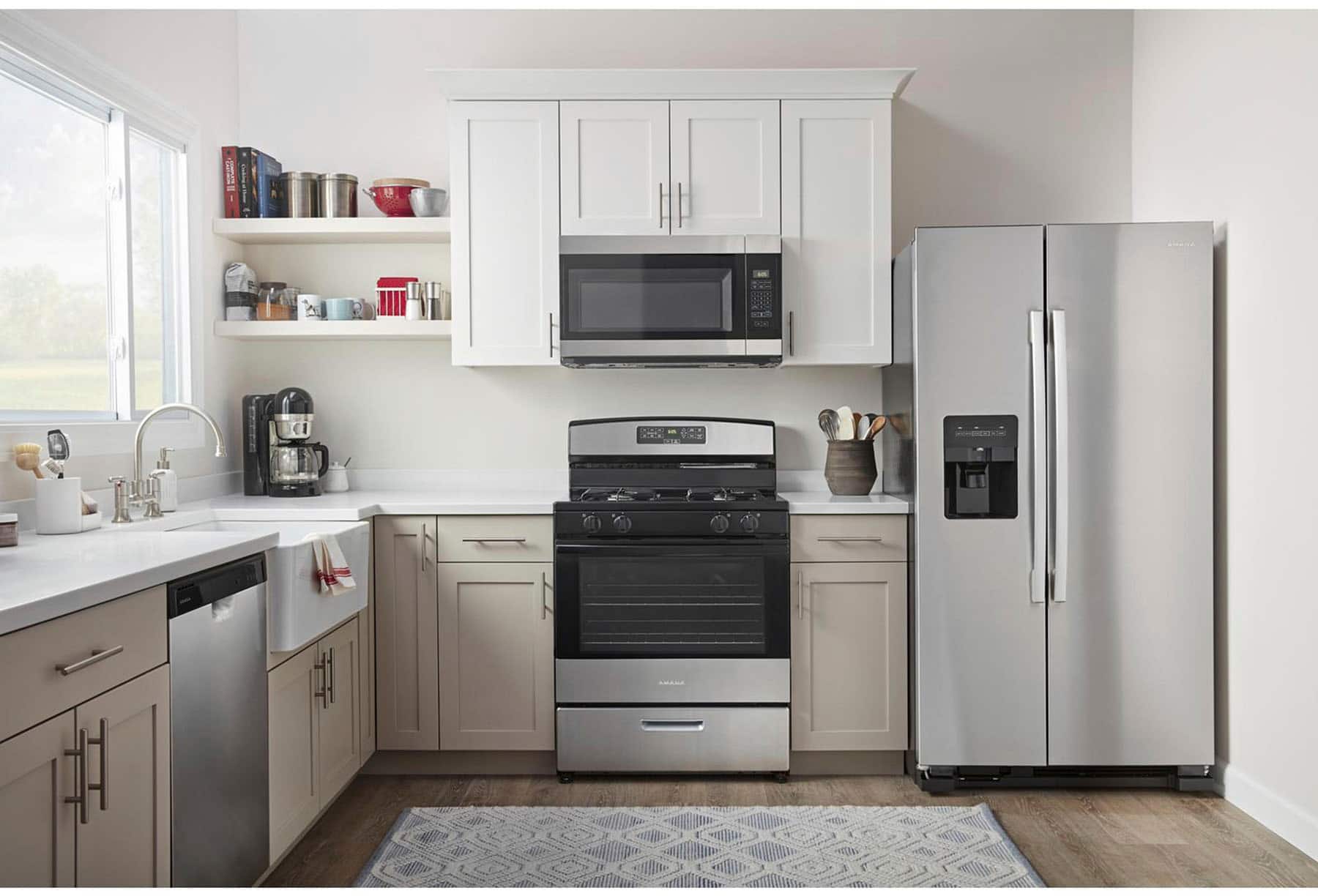 Make a quick snack or reheat leftovers with this Amana over-the-range microwave. The instant-action keys let you cook, reheat and defrost common foods with just the push of a button, and the overhead design saves valuable counter space. This Amana over-the-range microwave has a hidden vent for a seamless look.