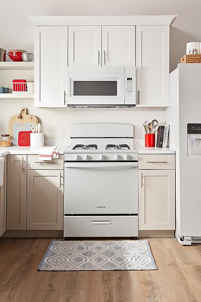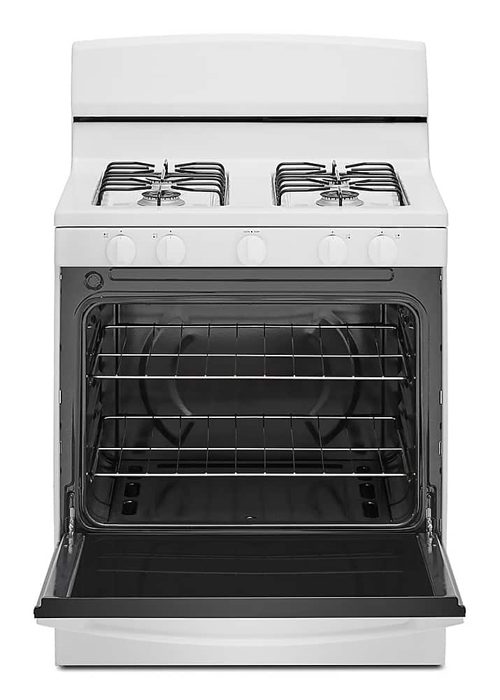This Amana gas range makes delicious meals, without difficult clean-up. Splatters won’t matter with the Easy-Clean Glass Door that helps messes wipe away easily. The versatile cooktop features four sealed burners so you don’t sweat the small spill, and the large oven capacity means there is room for dinner and dessert to cook at the same time.