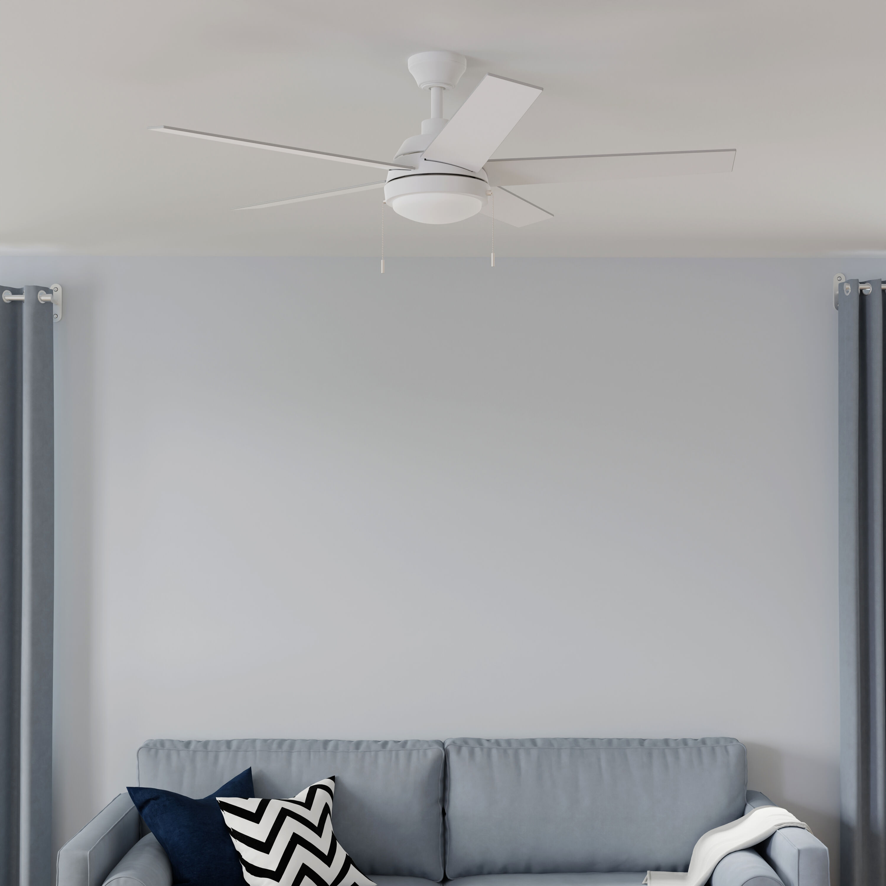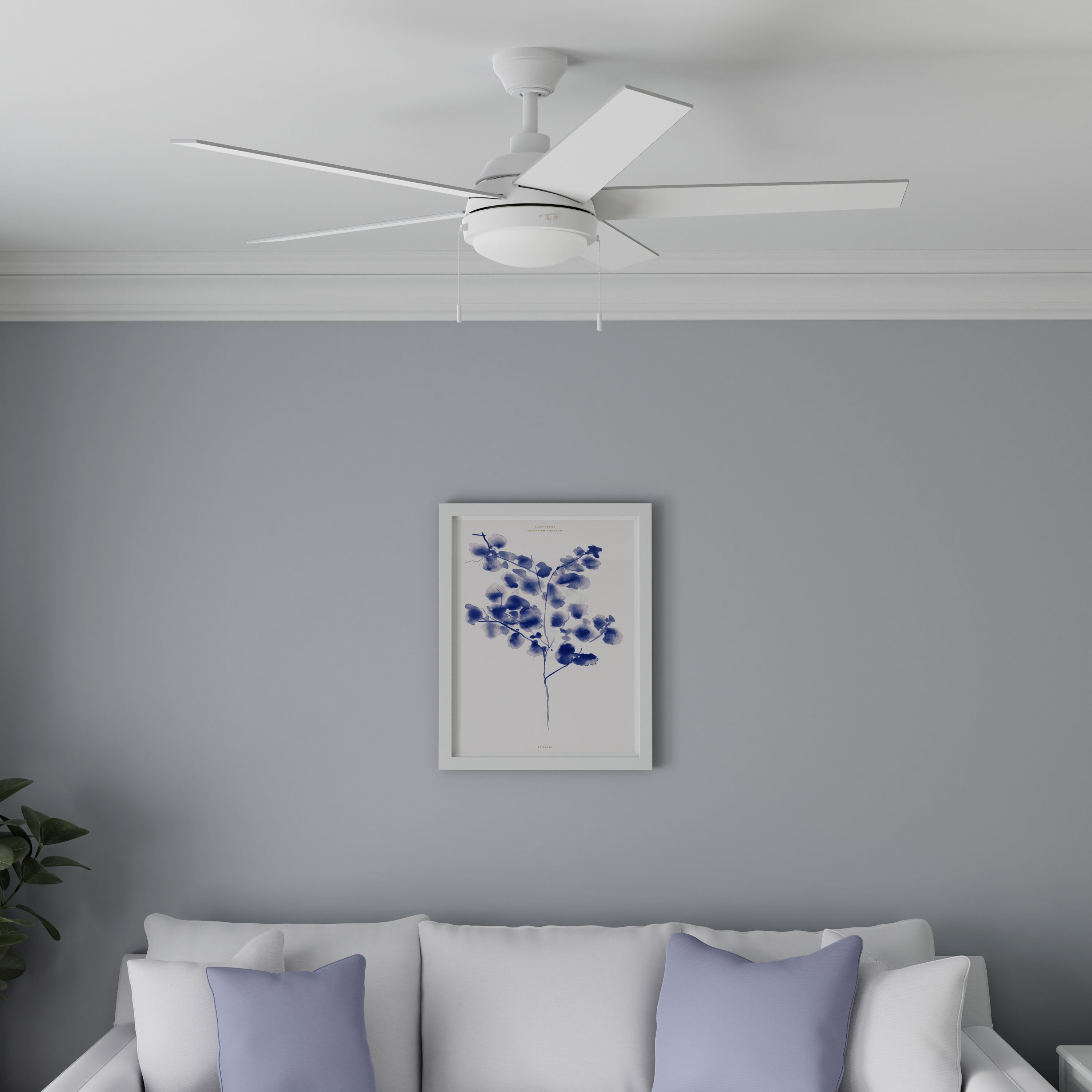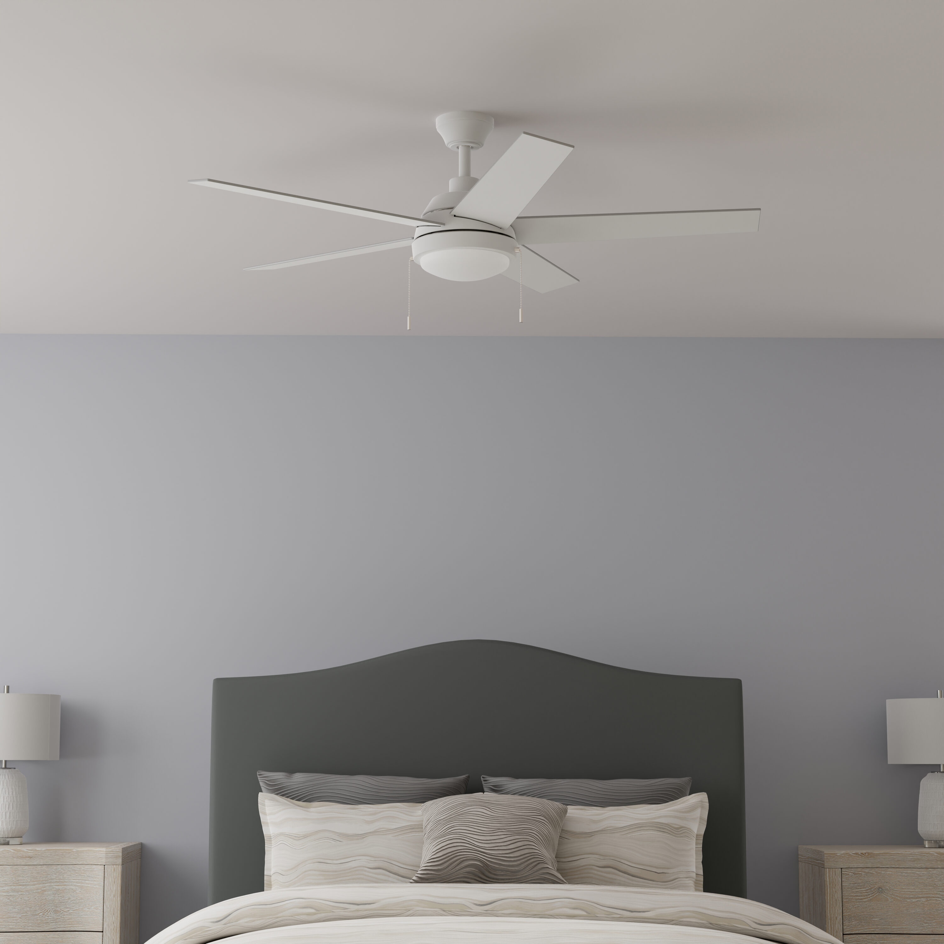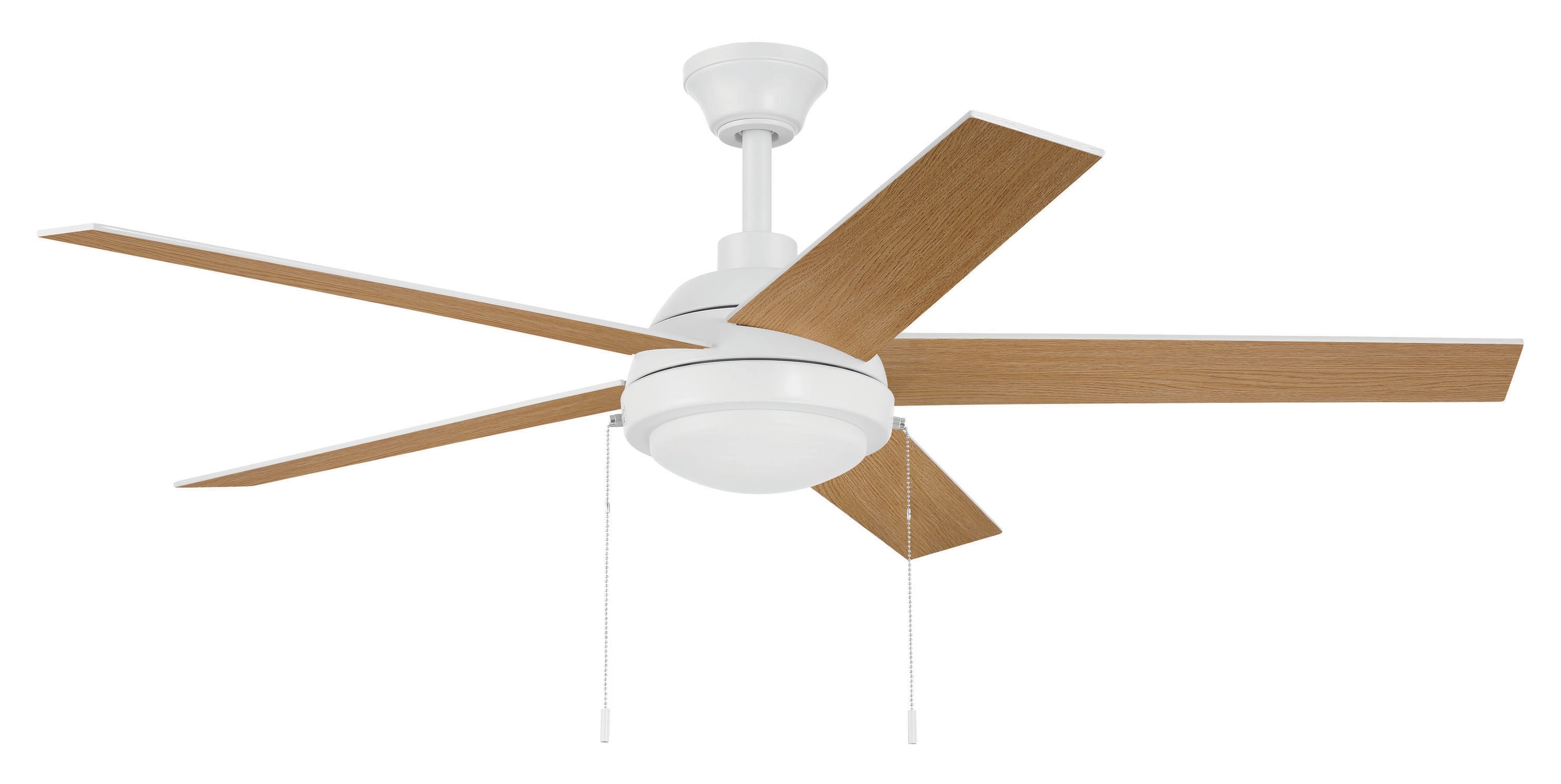 Effortlessly enhance your homes décor with the Amberwood fan. Featured in a white finish with complementing reversible blades in white and dark teak this was will leave an impression. The installation process is a breeze thanks to the included quick connect wiring, twist lock shades, and a convenient slide-on mounting bracket.