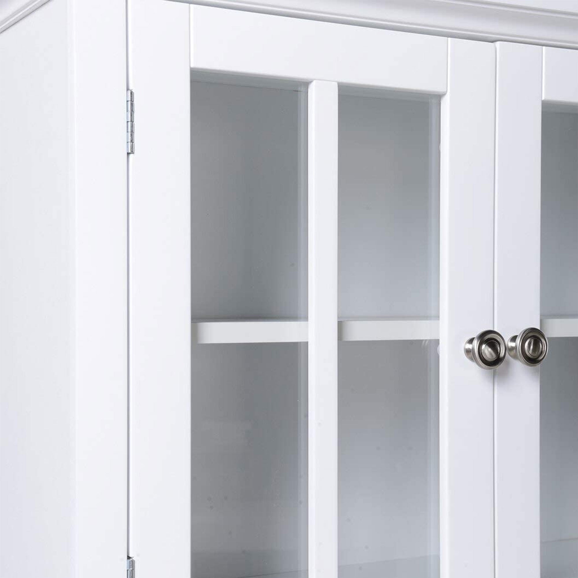 Free up more space in your kitchen and stay organized by adding the OS Home and Office Wooden Buffet and Hutch by American Furniture Classics to your home. This utility storage stand is constructed of durable fiberboard with stainless steel drawer and cupboard handles and a raised panel, vein-lined design, so you won’t have to sacrifice style for functionality. The buffet features a spacious drawer with sturdy metal glides for sorting and storing small items like kitchen utensils, notepads, and office supplies. The bottom of the unit is designed with 2 doors that open to reveal additional cabinet storage for storing small appliances, books, or pots and pans. The top of this storage stand features an open compartment that measures 29 inches wide and 12.25 inches deep to fit a small standard microwave or other large appliances that take up too much space on counters or kitchen islands. Even more storage room is found in the top hutch with tempered glass doors and adjustable shelving, so you can show off china dishware, glasses, and other memorabilia. For a durable kitchen utility cart that will save you space, try the American Furniture Classics OS Home and Office Wooden Buffet and Hutch.