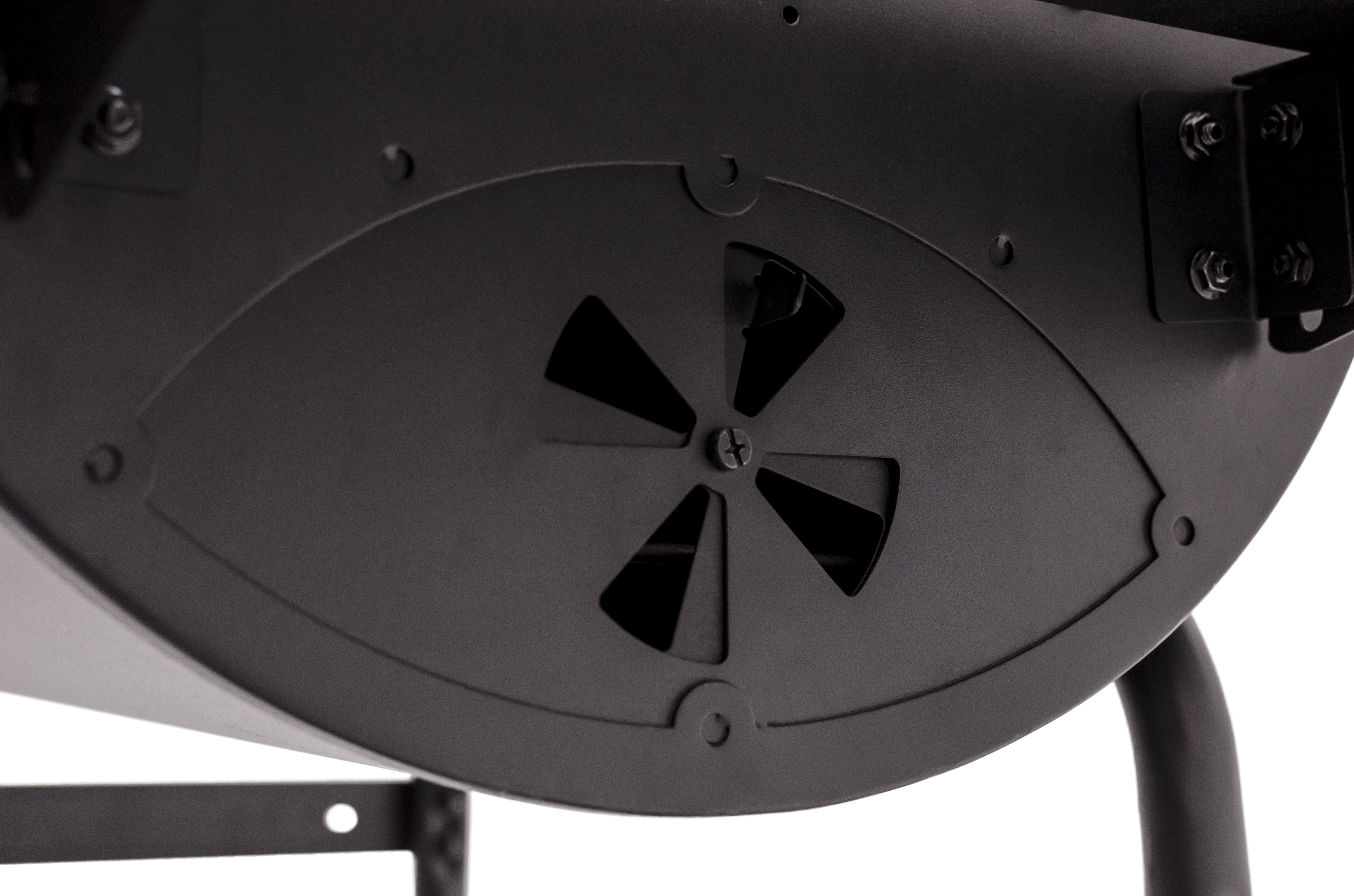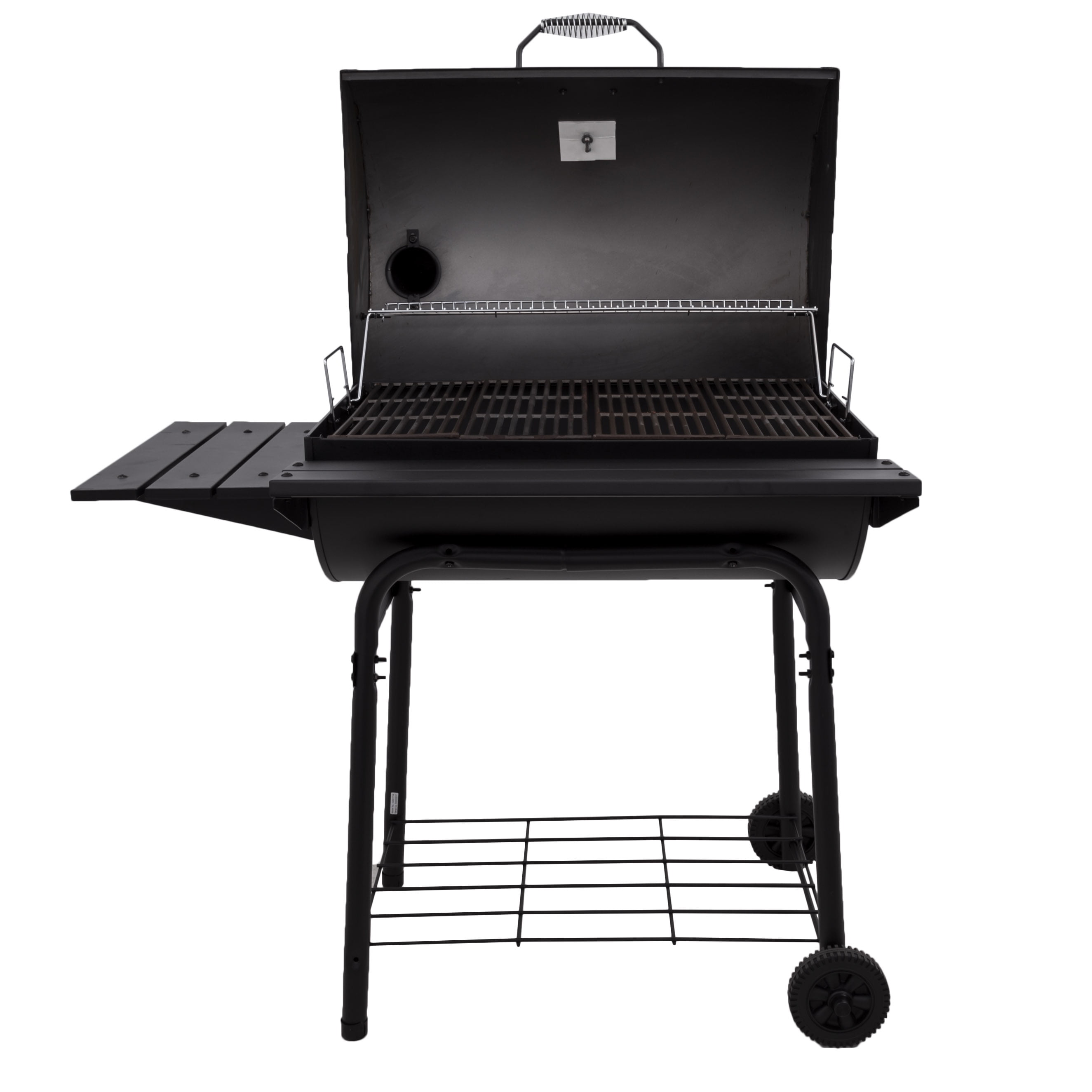 American Gourmet by Char-Broil 240 Charcoal Barrel Grill: 568sq. in of grilling space with a 272 sq. in warming rack Adjustable charcoal Grate – Control the heat level at the cooking grate by placing your charcoal pan in one of several preset positions. Damper – Control the grill temperature by opening and closing the dampers. To burn hotter keep the damper open to lower the temperature partially close it. Swing-A-Way Warming Rack – This warming rack swings back when you open the grill lid, so you can easily reach the food on your cooking grates. Charcoal grate/Ash Pan – The charcoal grate doubles as an ash pan and can be removed and emptied for easy clean up. Side Shelf – A handy place for your grilling tools and cooking accessories that doubles as extra workspace while you’re cooking. Lid-Mounted Temperature Gauge – Keep track of pre-heat status and monitor the inside temperature of your grill.
