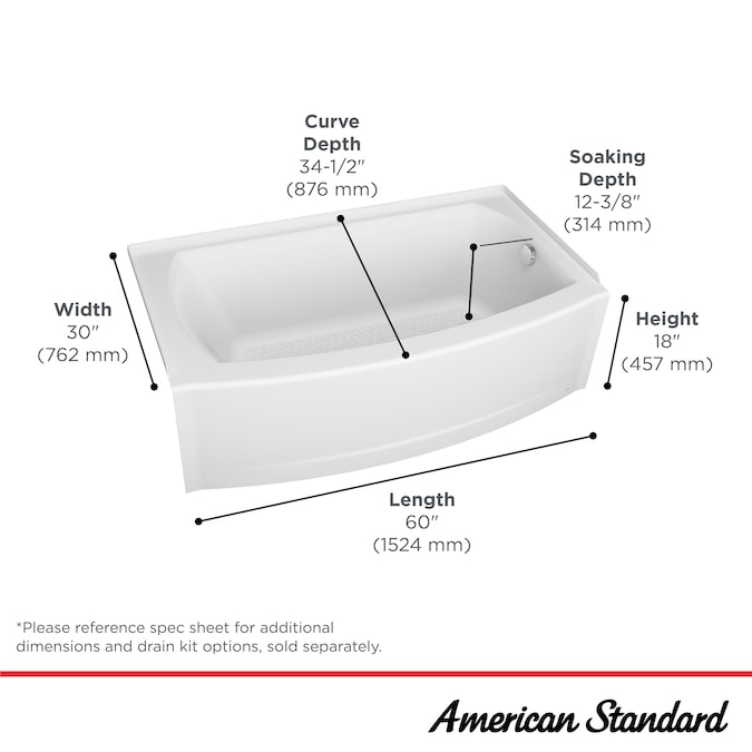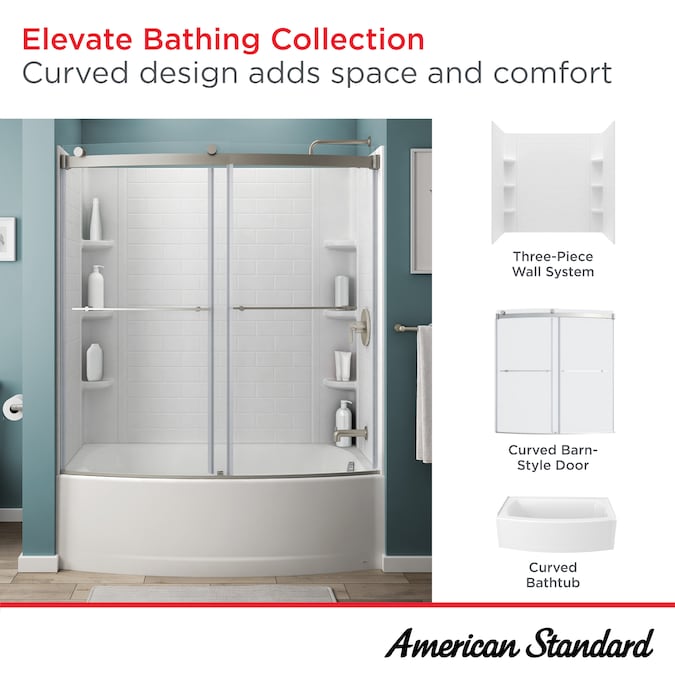 ABOUT THE ELEVATE COLLECTION — Designed to bring a unique touch to a bathroom update, the Elevate Collection is defined by its space-conscious curves that make bathing more comfortable and the setting more beautiful. The collection includes curved bathtub and shower bases, curved doors and a classic subway tile patterned wall system, each sold separately. Explore the collection and choose only the pieces you need or plan a complete makeover that’s easy and affordable.The Elevate Bathtub from American Standard is a unique curved design that creates additional space for a more comfortable bathing experience. This gently curved tub features a generous backrest for relaxation and textured floor for safer, non-slip entry and exit. Add the coordinating Elevate curved barn-style door and wall surround, each sold separately, for a complete bath makeover.