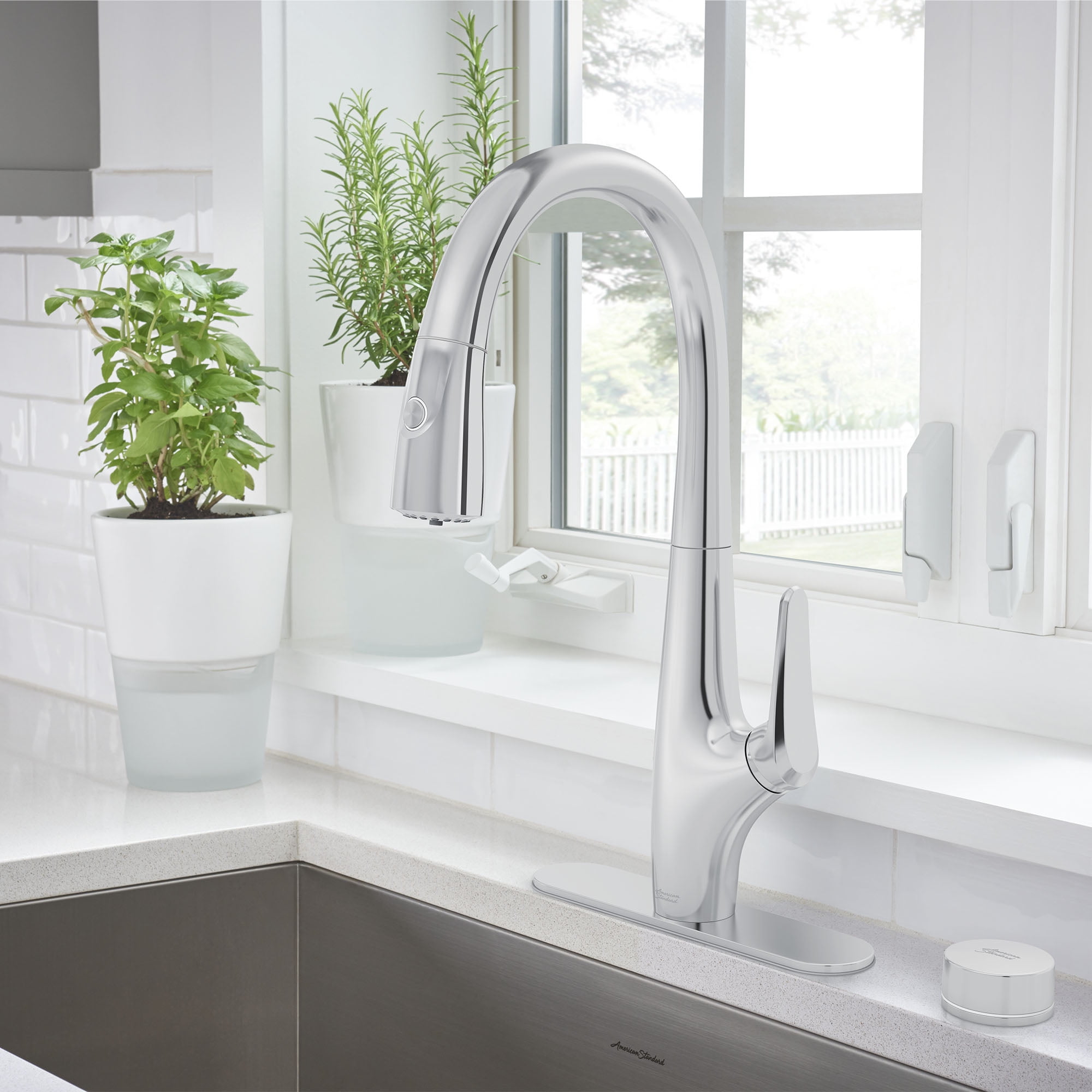 Enjoy the confidence of knowing your tap water is clean and safe to drink with the Saybrook Filtered Kitchen Faucet from American Standard. As a leader in providing solutions for better living and increased well-being, this American Standard kitchen faucet reduces 99.7% of lead, 96.9% of chlorine, and 92.6% of class I particulates from your tap water at the push of a button. The Saybrook Faucet dispenses both filtered cold water and ordinary tap water through two separate water channels removing any chance of mixed water flow. For ordinary tap water, use the lever handle. Environmentally friendly, the Saybrook Faucet puts filtered water at your fingertips, eliminating reliance on plastic water bottles, heavy 5-gallon jugs, and bulky external filters. Thanks to an LED indicator light, you’ll know when the filter needs to be replaced, ensuring your water is always clean and fresh-tasting. This innovative design allows for quick, above-the-deck filter replacement; no more reaching under the sink. Or, if deck space is limited, the filter can be installed on the inside wall of the cabinet. Based on NSF / ANSI 42 and 53 standards @ 6.5pH
