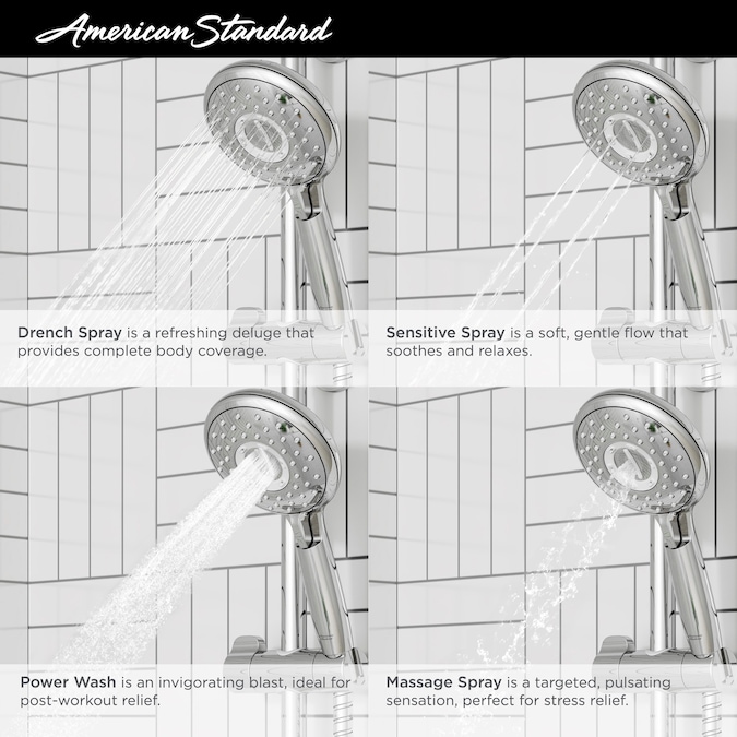 - Hand shower features four spray functions: Drench, full body coverage; Sensitive, soft, gentle spray; PowerWash, invigorating spray; Massage, pulsating spray