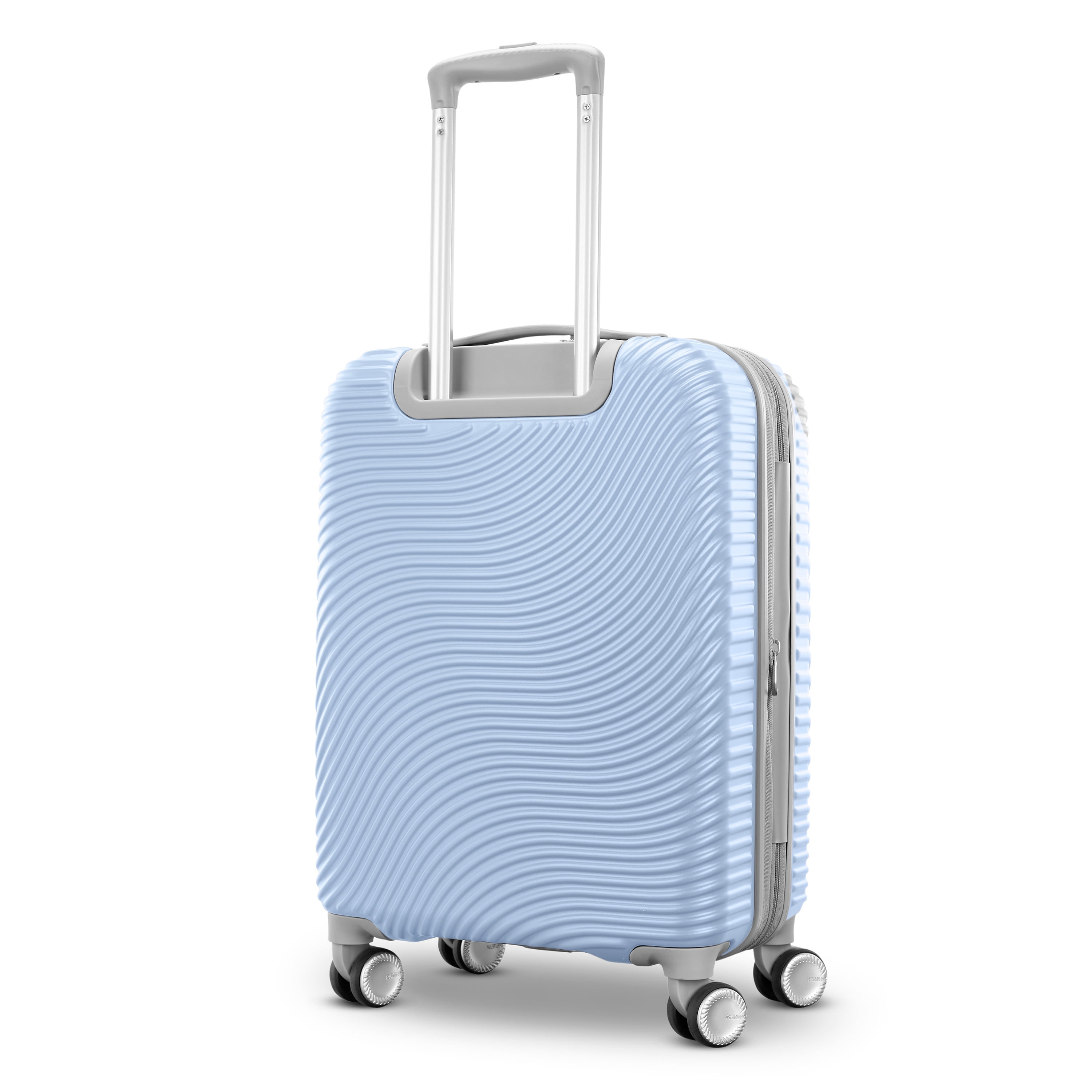 Equipped with 360-degree Dual Spinner Wheels, the American Tourister Waves luggage moves smoothly in all directions RightHeight handle system adjusts to multiple one inch increments for travelers of any size Interior elastic cross straps keep belongings in place during travel Interior panel features a zippered modesty pocket for storing small items Durable yet lightweight, this suitcase is scratch resistant to keep your luggage looking great trip after trip