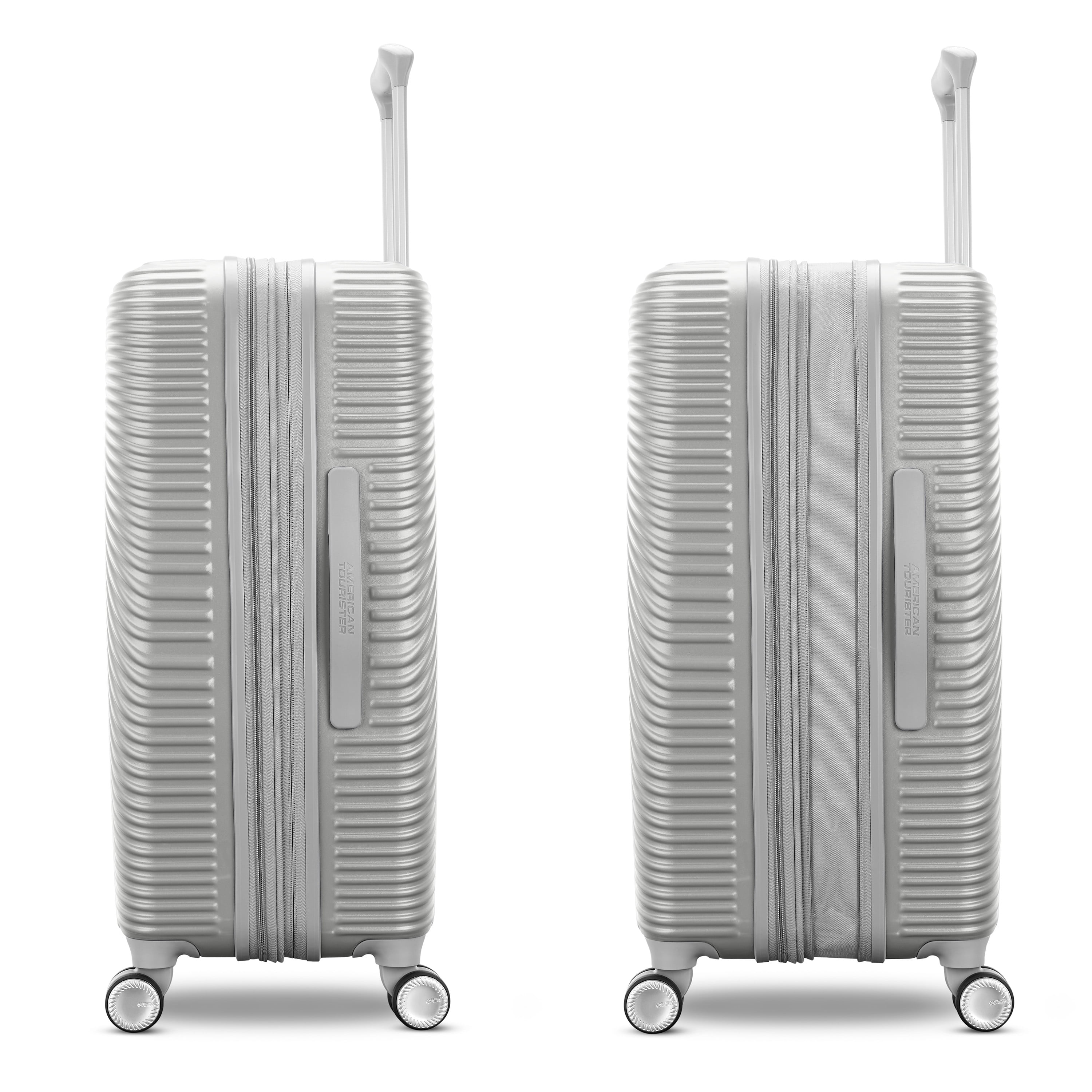 American Tourister Color Waves Carry On Expandable Luggage Suitcase with Spinner Wheels, Silver