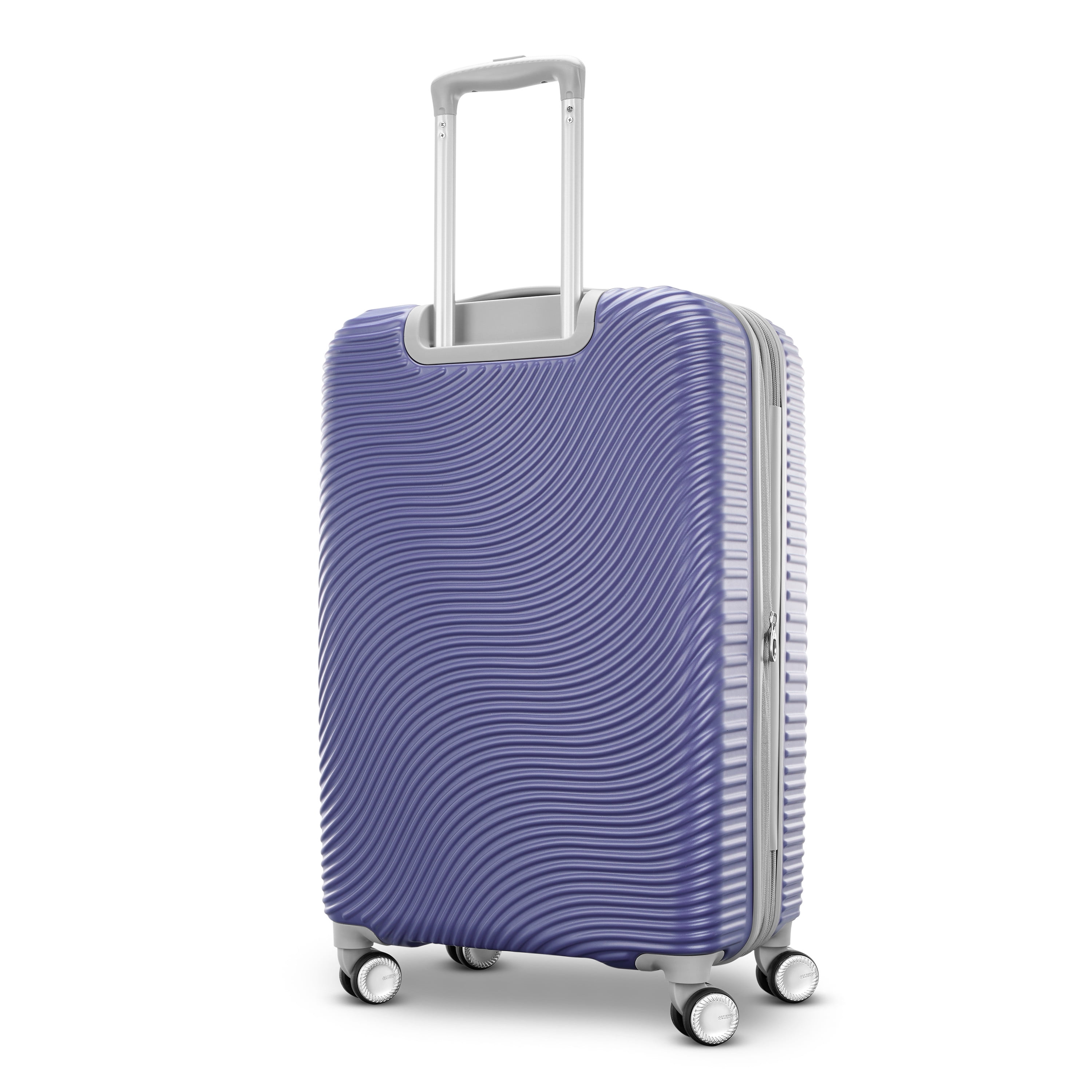 Equipped with 360-degree Dual Spinner Wheels, the American Tourister Waves luggage moves smoothly in all directions RightHeight handle system adjusts to multiple one inch increments for travelers of any size Interior elastic cross straps keep belongings in place during travel Interior panel features a zippered modesty pocket for storing small items Durable yet lightweight, this suitcase is scratch resistant to keep your luggage looking great trip after trip