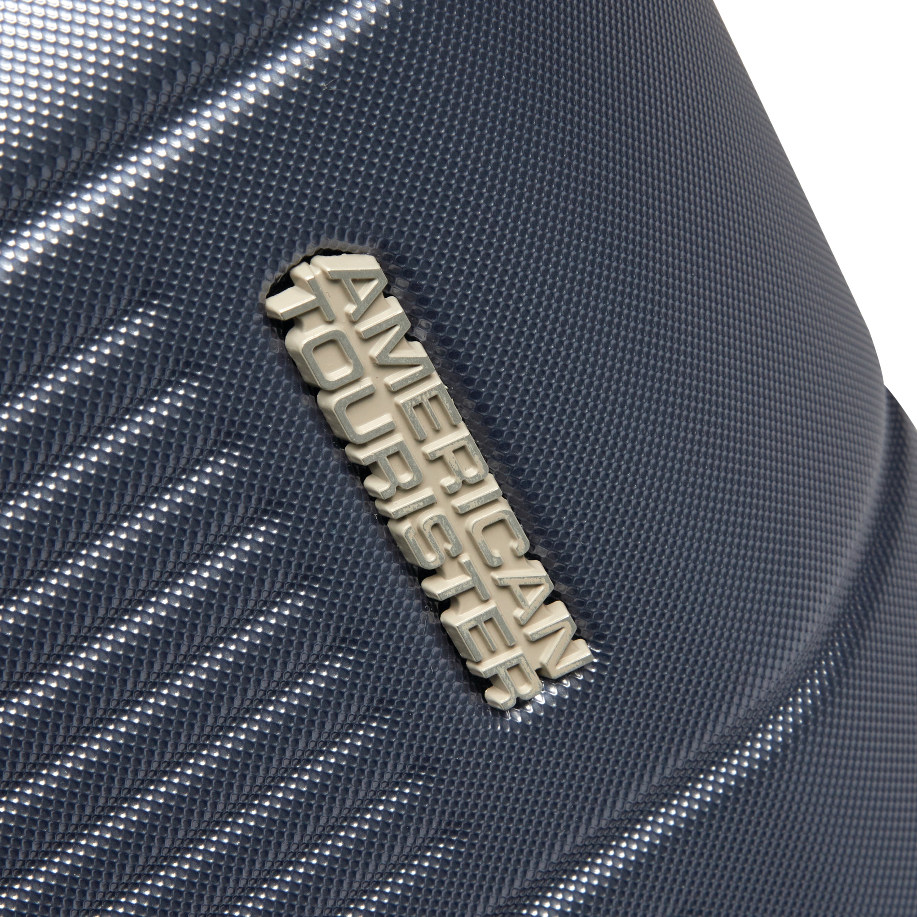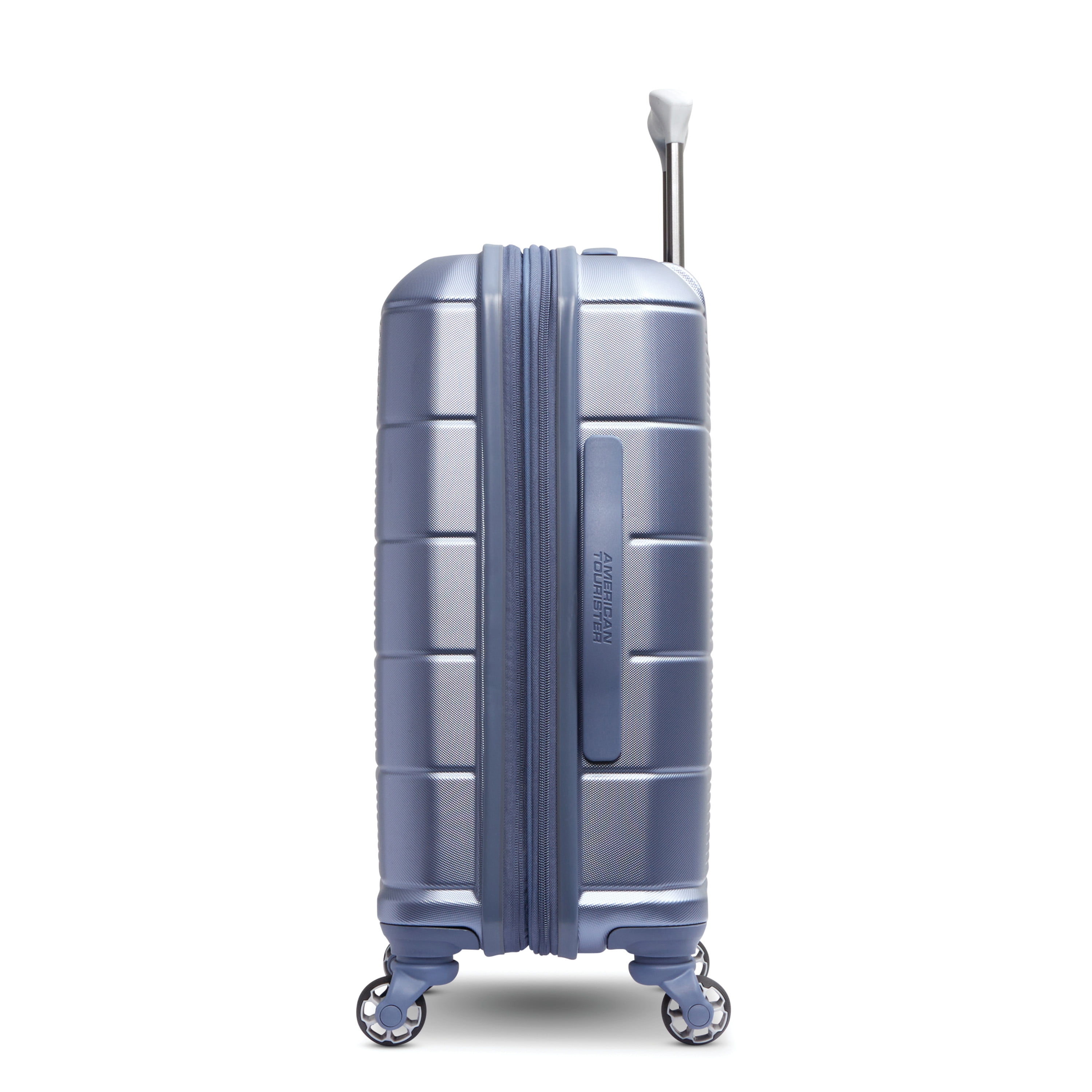 Small Carry-on spinner luggage Textured ABS Hardshell case Sturdy handling with our ergonomic carbon fiber texture trolly grip that adjusts to you size Roll confidently with our wear and tear tested ball wheel It delivers maximum stabilty and comfort Smooth operator for hands of all kinds, our large zipper pulls are effortless to use arrel shape with precise details Max-capacity interior, including a modesty pocket, mesh door pocket, and elastic tie tapes All cases expand 1″ American Tourister 10 year warranty