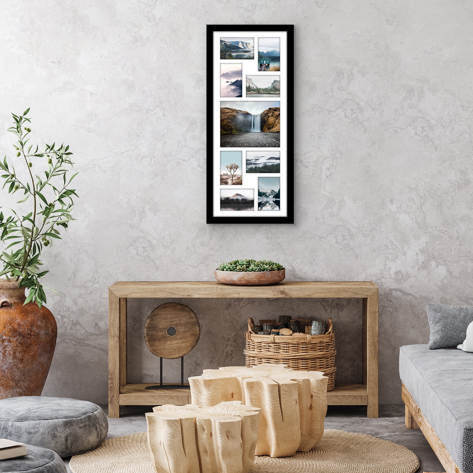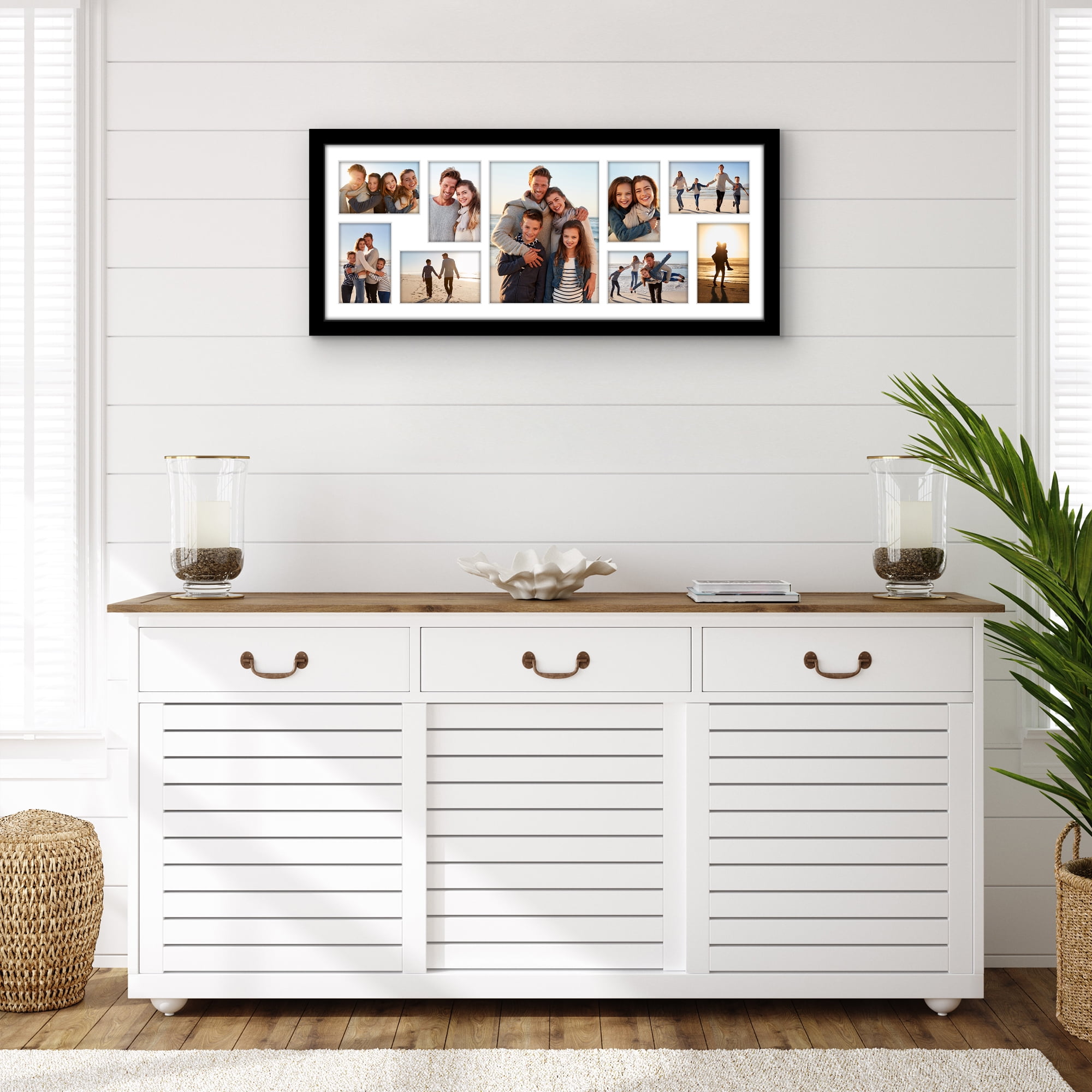 Americanflat 12×30 Collage Picture Frame – Fits One 8×10 Photo and Eight 4×6 Photos or One 12×30 Photo – Black