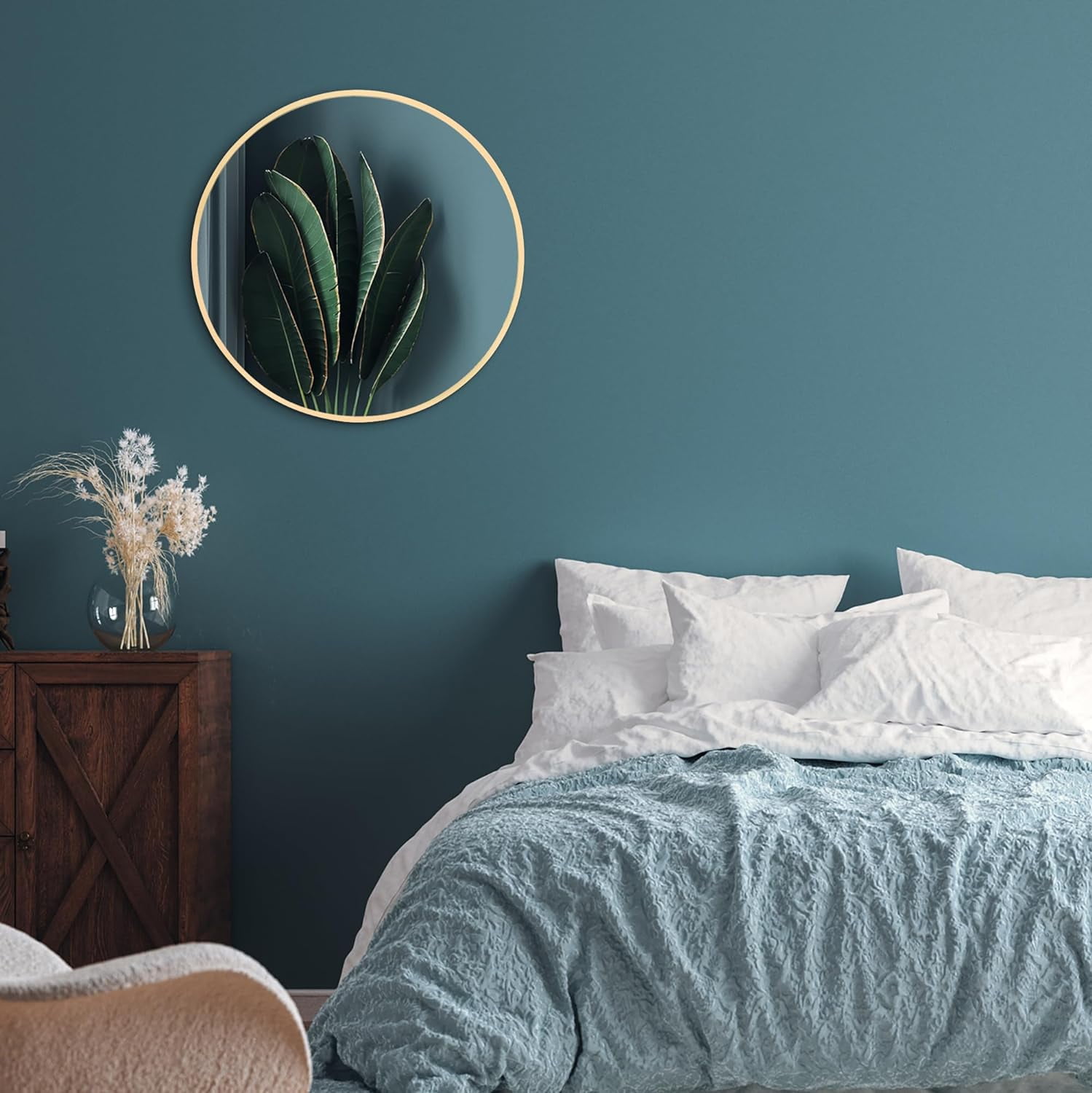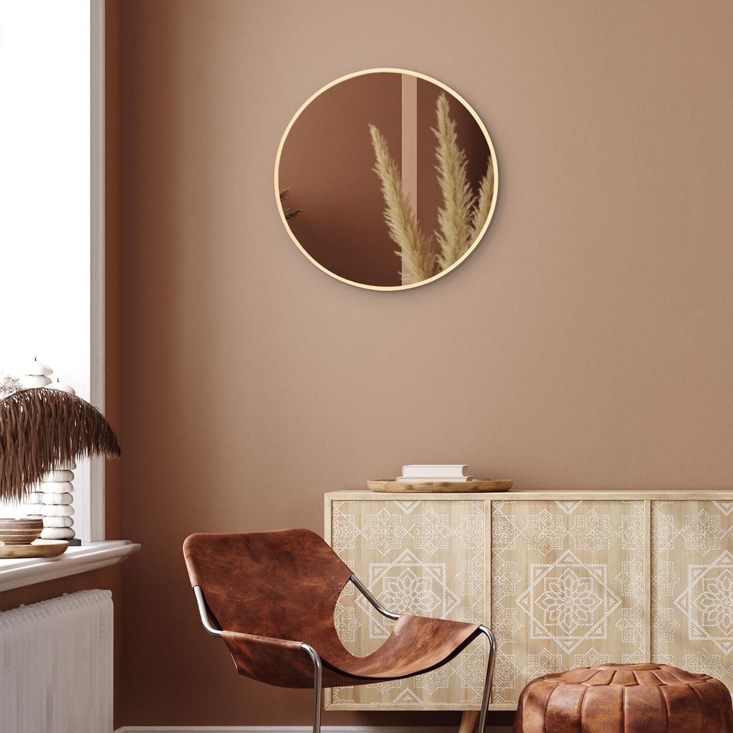 Add Light to Your Space : Hang this beautiful circular mirror in your hall or bathroom for a stylish way to add light to your space. This aluminium black framed mirror fits perfectly in bedrooms or hallways. Dimensions : With a 19.7 inch diameter, this mirror is big enough to give you a good view without being too big to dominate a space. The gold bathroom mirror frame is made from aluminum and measures 0.3″ wide X 1.3″ deep Ideal as a Bathroom Mirror : Designed as a wall mirror, these are perfect bathroom mirrors for elevating your wall decor. A gold frame mirror suits virtually any color scheme and adds light and a feeling of space to your home. On the back, a hanging bracket allows you to hang the mirror easily. High Quality : This round mirror is designed with simplicity and precision and is made from premium aluminum and lead-free glass. A sturdy hanger on the back is all the hardware required to hang your wall mirror. Protective Packaging : Americanflat developed exclusive proprietary packaging that helps ensure safe delivery of fragile items so you can order with confidence. Click and add to your cart today!
