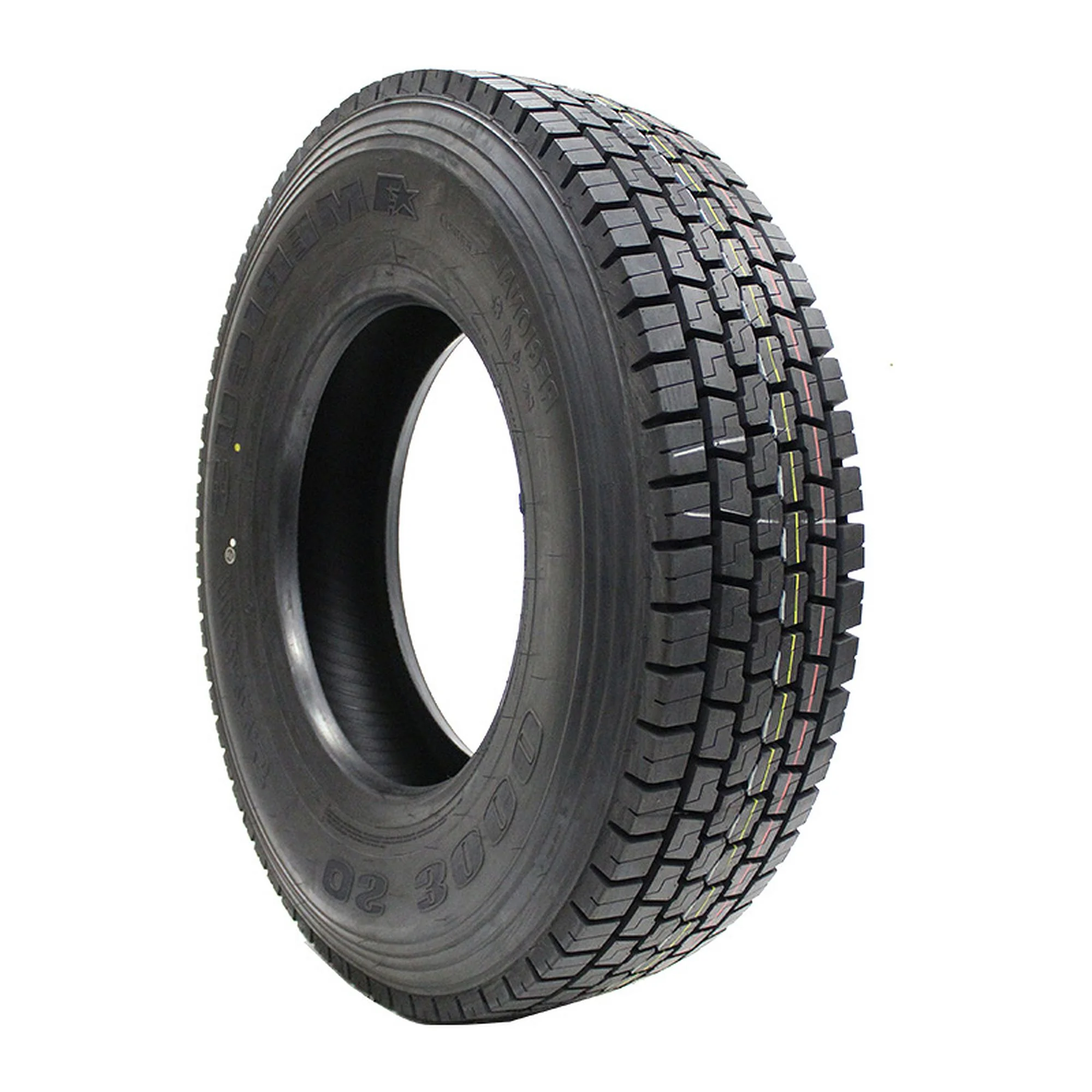 Designed for use on the drive axle of semi-trucks in regional and long haul applications Retreadable for a longer service life Up to 16 ply rated to boost strength and durability Open shoulder design promotes self-cleaning for consistent traction and to promote longer wear Block tread pattern allows for solid traction and handling performance year-round Size: 11R24.5 Load Range: H Product May Vary From Picture Wheel/Rim Not Included