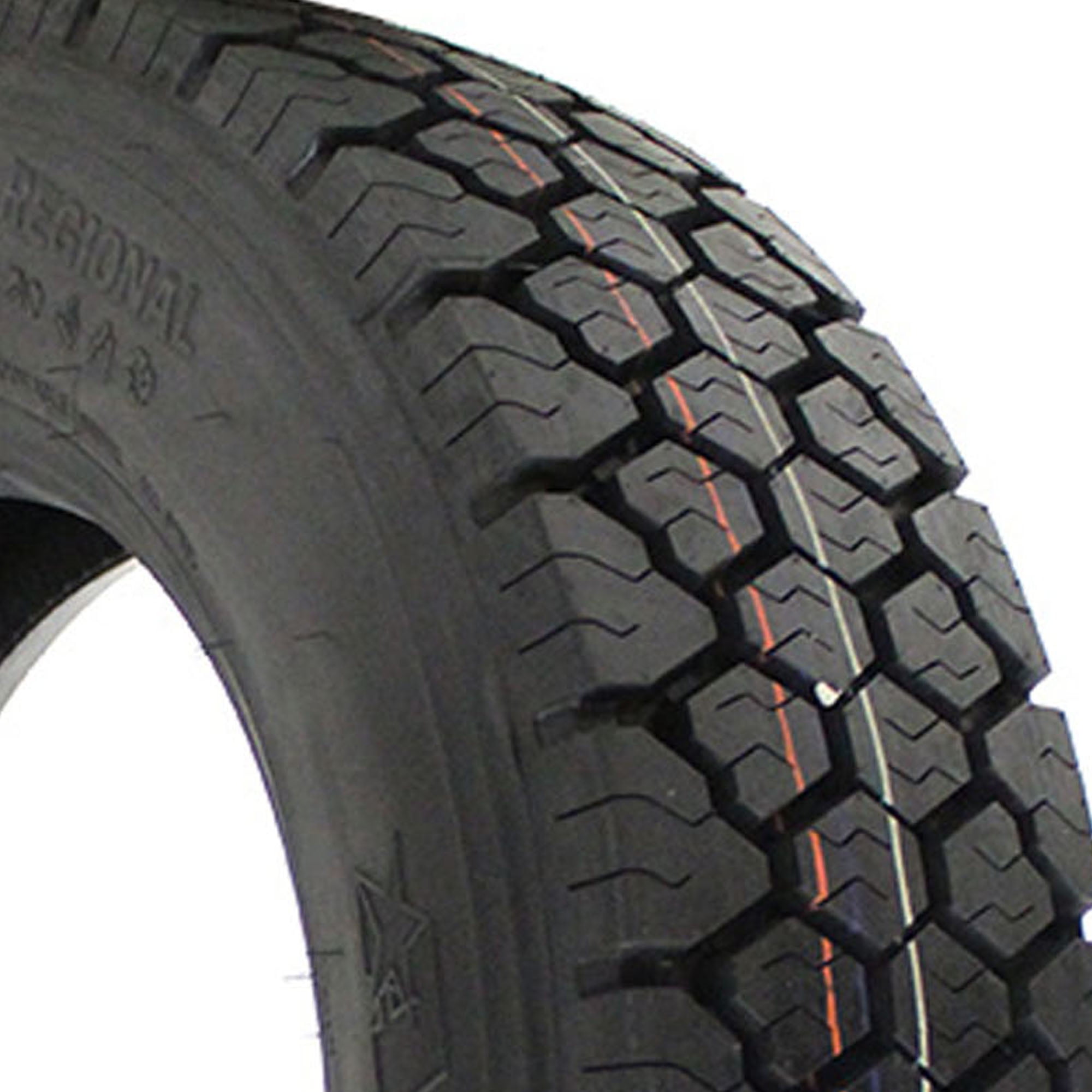Designed for use on the drive axle of semi-trucks in rough work, the Americus RD3000 tire features a damage-resistant tread compound, aggressive lug tread for traction in limited off-road use, stone ejectors built into the tread grooves to protect the casing, and up to a 16 ply rating. Additionally, the RD3000’s 18/32″ deep tread depth delivers traction and long miles until retreading.