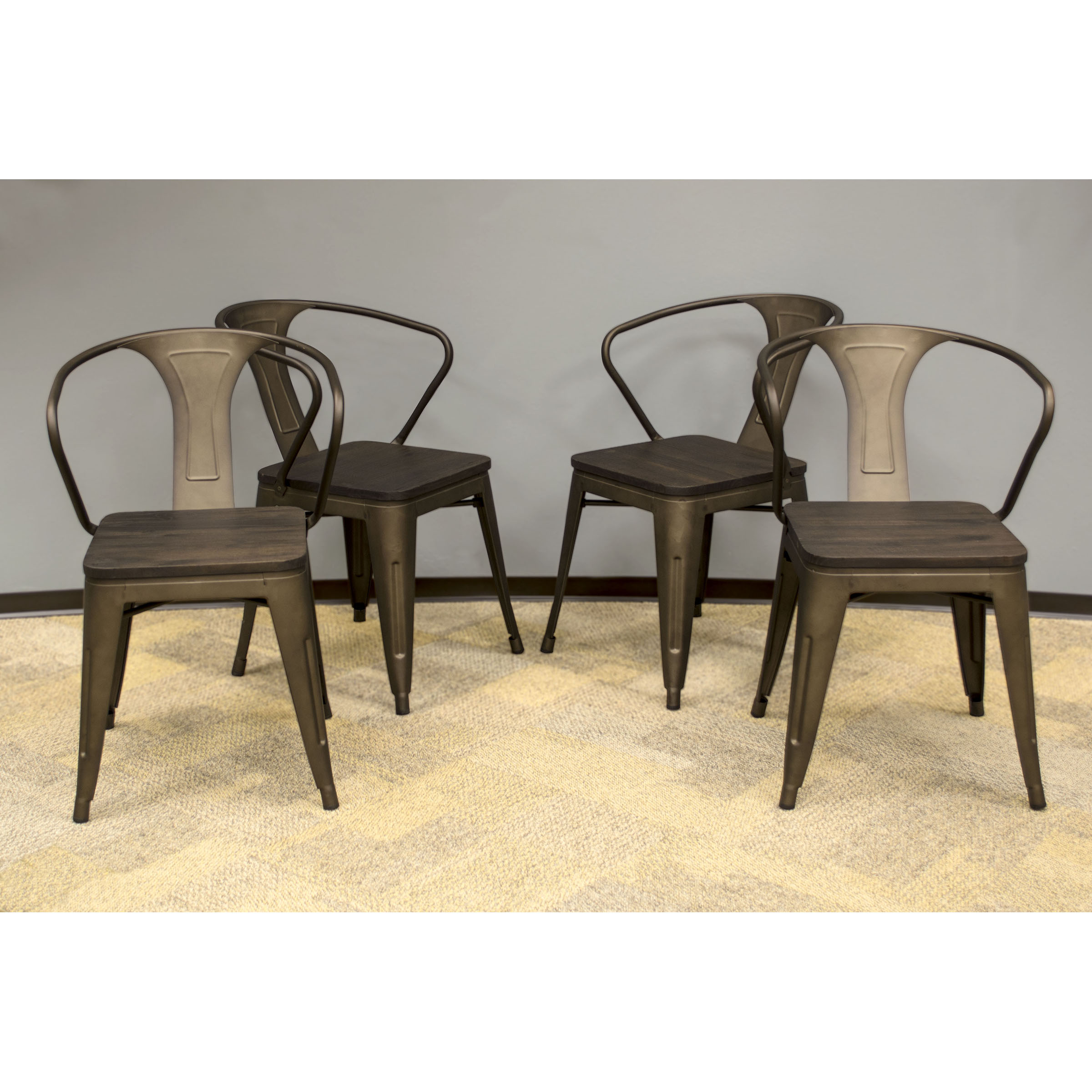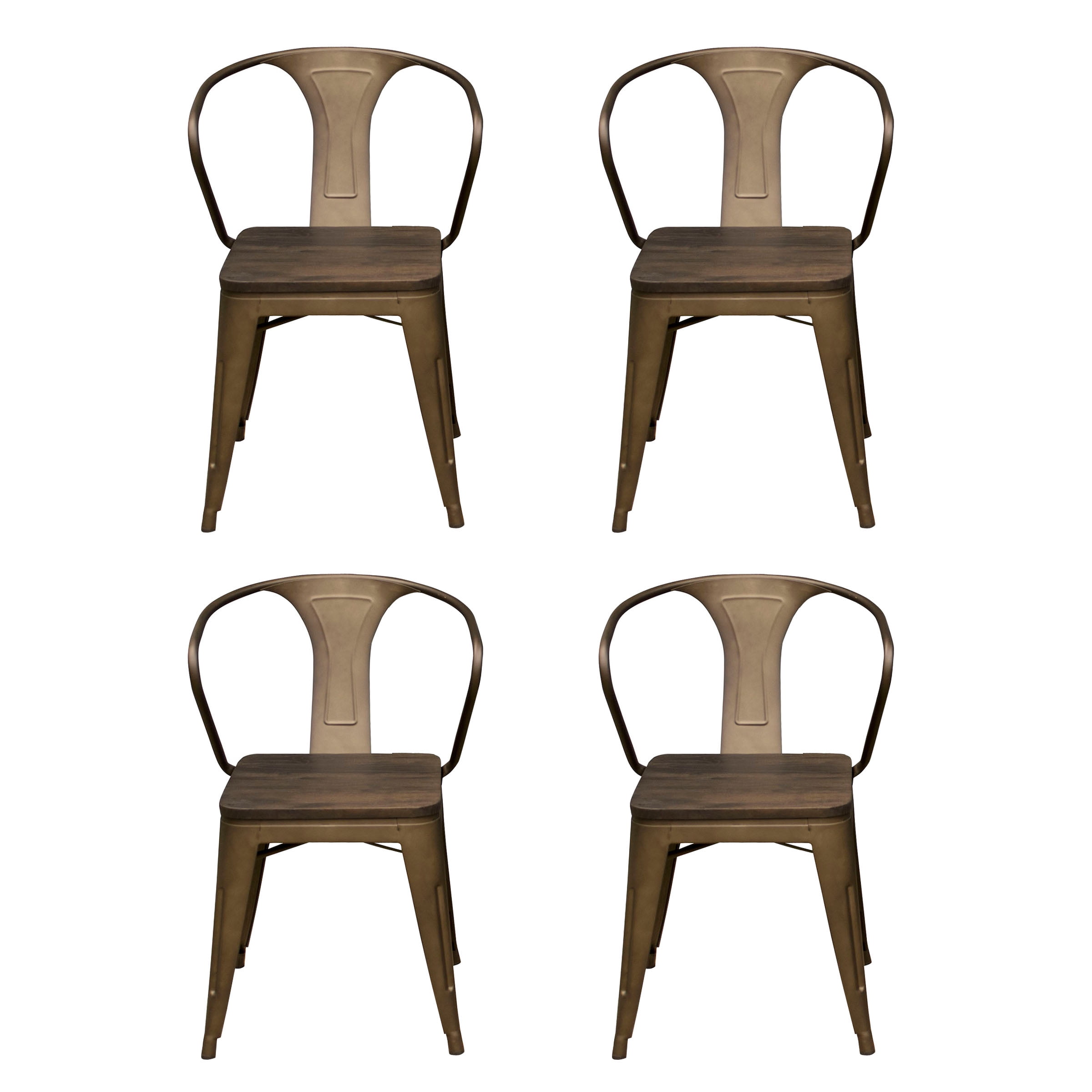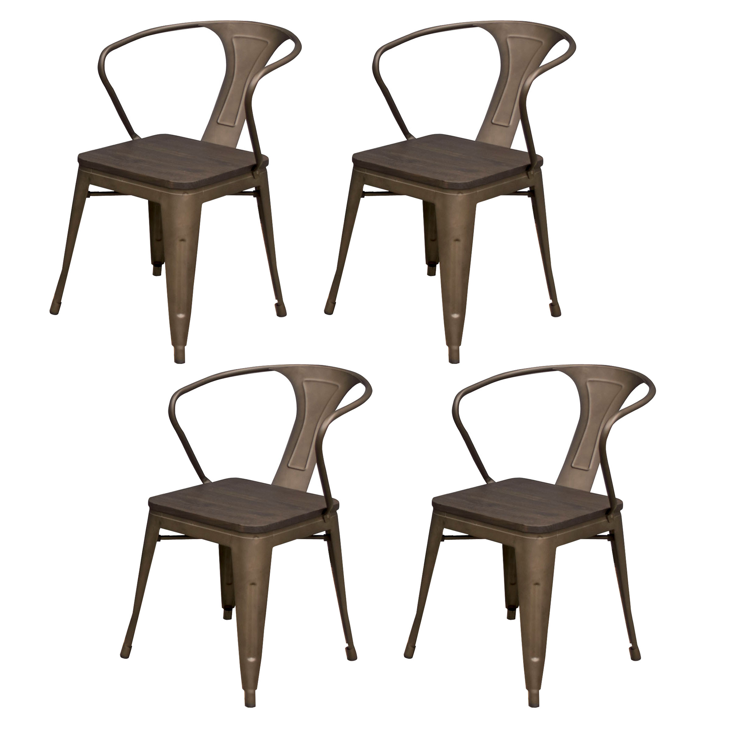Relish in your modern industrial styled dining area with the Rustic AmeriHome Loft Contemporary Dining Armchair – Set of 4. The dark elm wood seat gives these dining chairs a sophisticated look without being too formal. Family and friends can relax with ease due to the comfortable design of the armrest and backrest. With the durable scratch resistant powder coat finish that comes in choice of color the chairs can be used in any room in your home. Lightweight and sturdy each Chair weighs only 15 lbs. but can hold up to 530 lbs. Each chair has a brace under the seat that provides additional support and stability. No-mark feet keep them from sliding or scratching hardwood floors.