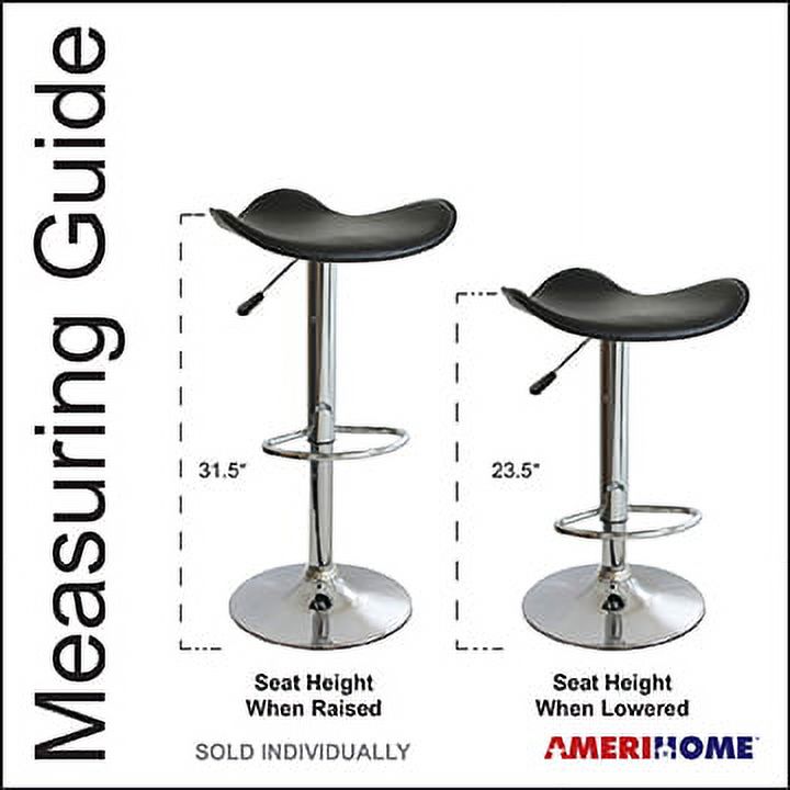 The Single AmeriHome Adjustable Height Backless Bar Stool adds a classic element to the kitchen, bar, game room, basement, or shop. The bar stool has a style reminiscent of the days of diners and drive ins and features a mirrorlike polished chrome base and a black vinyl seat for a hint of classic vintage design. This bar stool is designed with comfort in mind. With a large 18 inch wide, padded vinyl 360-degree swivel seat, a built-in footrest, and an adjustable seat height of 23.25 to 31.5 inches. This stool is comfortable for kids and adults. Adjustable seat height from 23.25 to 31.5 in.18 in., padded vinyl, 360-degree swivel seat.330 lbs. weight capacity. Sold individually. Material: Vinyl, Chrome. Color: Black, Silver. Warranty: 90 Day Limited. Weight: 12 Lbs. Dimension: 18″Lx18″Wx31.5″H