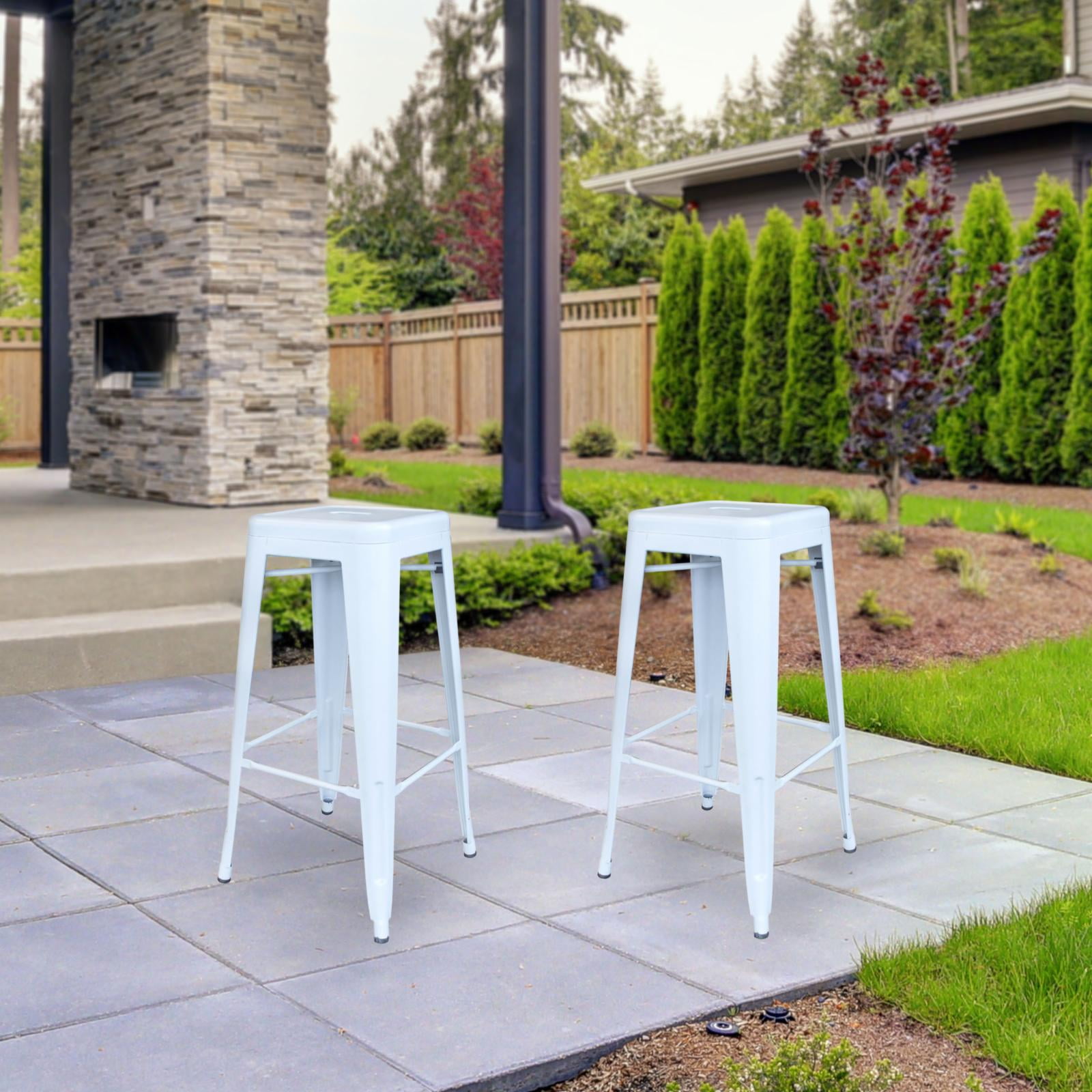 The AmeriHome Indoor/Outoor 30 inch Metal Bar Stools are stylish enough for the kitchen, loft, and retail space, but are also durable, and rust resistant for use on the patio and in the garage. With a matte weather resistant zinc finish, these stools can be used by the pool, at the patio bar, or even as a plant stand on the porch. Ideal for small spaces, the bars stools easily and neatly stack together, making them easy to stash out of the way for storage, making them a great option for small apartment balconies. Each Metal Bar Stool has a brace under the seat that provides additional support and stability. No-mar rubber feet keep them from sliding and scratching hardwood floors and deck boards. A handle in the seat makes the stools easy to pick up and move. Lightweight and sturdy, each stool weighs only 8.5 lbs., but is strong enough to hold up to 330 lbs. Features Indoor & Outdoor Metal Bar Stool Set Assured for high quality and standards 2 PieceSpecifications Color: Red Dimension: 17″ H x 30″ W x 17″ D – SKU: BFFT3291