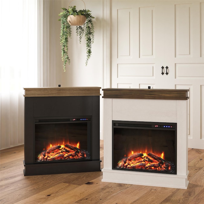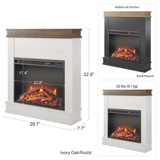 Enjoy the warm and inviting feel of a fire at the push of a button with Ameriwood Home Mateo Fireplace with Mantel. The sleek black finish on laminated particle board accented with a natural faux wood grain mantel lend to a minimal and modern look. Adorn with your favorite décor or your beloved family photos atop the beautiful naturally finished mantel. Control the Fireplace flame setting with the included remote control or by the touch panel and choose to enjoy your Fireplace with or without the heat setting while still allowing the flames to give off their calming feel. This 23″ fireplace insert is powerful enough to warm a room up to 400 square feet and features an adjustable temperature control and adjustable flame to both create your desired ambiance while keeping your room at the perfect temperature. The Electric Fireplace ships flat to your door and requires assembly. Two adults are recommended to assemble and move. Once assembled, the Fireplace measures to be 31.89”H x 31.65”W x 7.76”D.