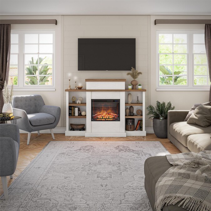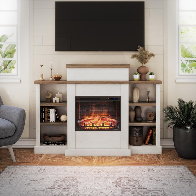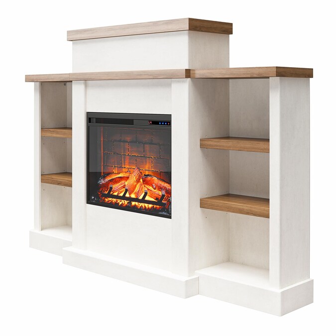 Gather loved ones together and cozy up next to the Ameriwood Home Garrison Electric Fireplace with Mantel and Bookcase. The laminated MDF and particleboard is finished in a beautiful white plaster finish with walnut shelving for an updated, modern look. The inviting ambiance beckons you to curl up with a good book in front of this 3 tiered fireplace. On either side of the 23” electric fireplace insert is extra storage space for your books, family photos and collectibles. Adjustable shelving allows you to customize the bookcase to suit your needs. Control the Fireplace flame setting with the included remote control or by the touch panel and choose to enjoy your Fireplace with or without the heat setting while still allowing the flames to give off their calming feel. This fireplace insert is powerful enough to heat up a room up to 400 square feet and features an adjustable temperature control to keep your room at the perfect temperature. The Electric Fireplace with Mantel and Bookcase ships flat to your door and requires assembly. Two adults are recommended to assemble and move. Once assembled, the unit measures to be 45.4″ H x 64.33″ W x 12.64″ D.
