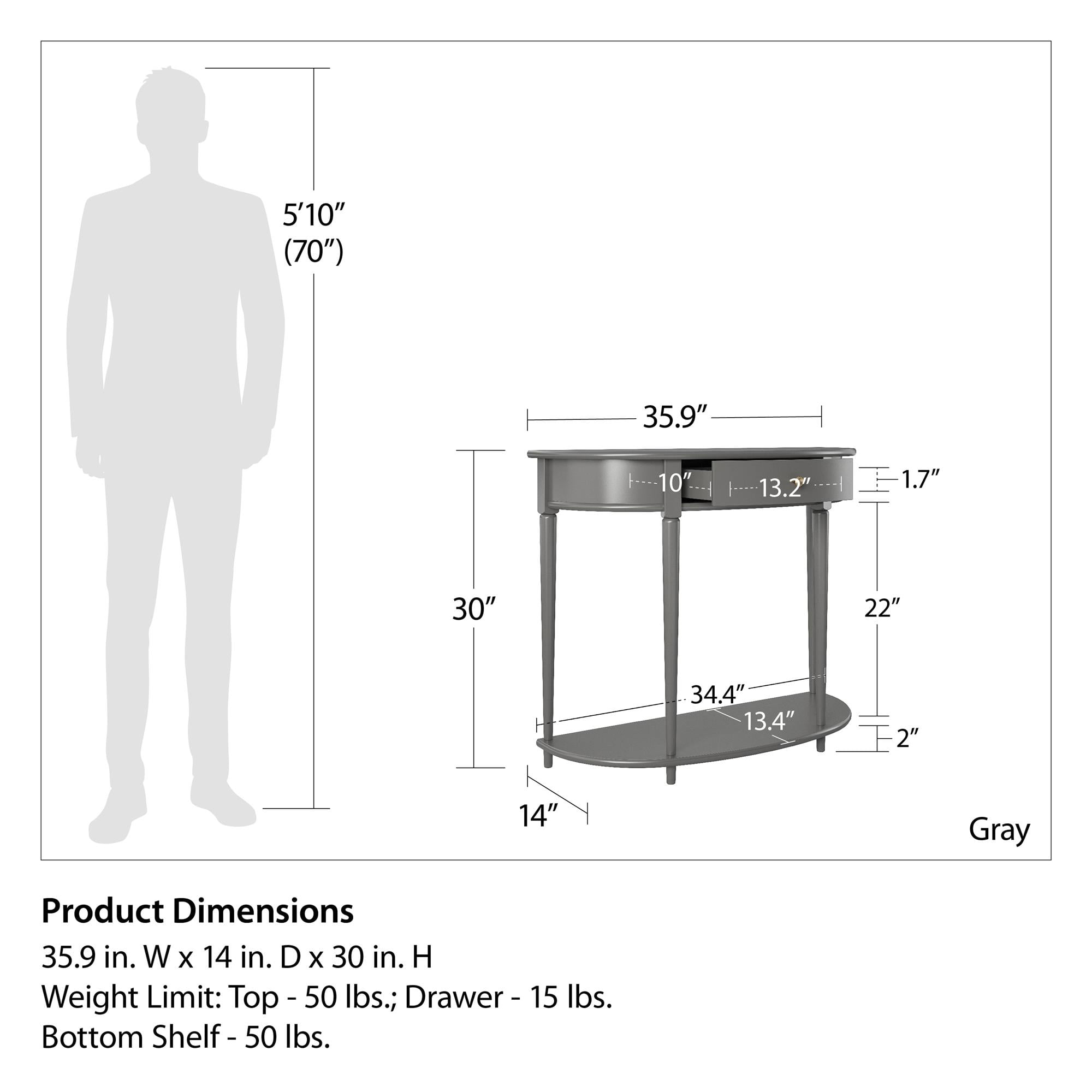 Ameriwood Home Abbie Half-Moon Console Table, Gray