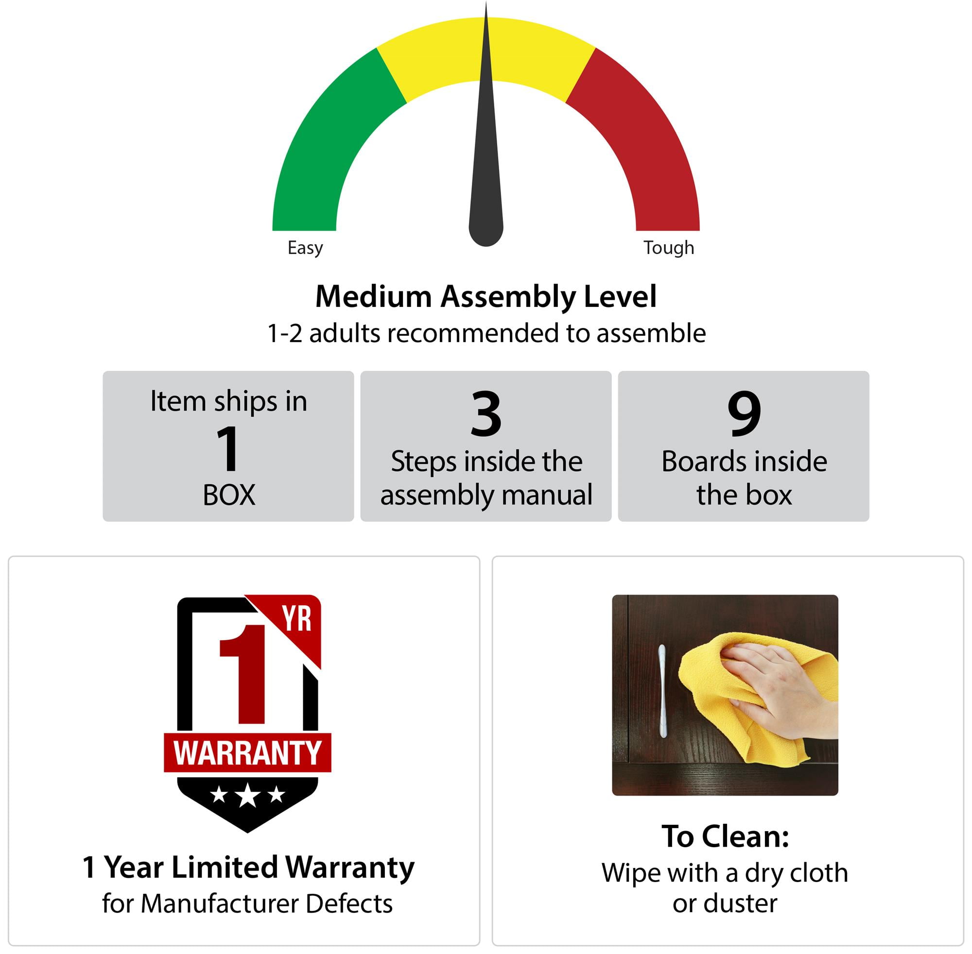 The practical Ameriwood Home Double Pedestal Computer Desk is incredibly stylish and designed to enhance your room’s existing style Made of laminated hollow core shelves with powder-coated metal frame, the dark brown woodgrain finish pairs with the black metal frame for a modern, yet classic look The large desktop surface provides plenty of space for your laptop and important papers. Use the 4 bottom shelves for keeping books and office supplies organized and easily accessible Complete your space with the entire Elmwood collection for a coordinated look (each sold separately) The Desk ships flat to your door and 2 adults are recommended to assemble. The desktop can hold up to 70 lbs. while each shelf can hold 15 lbs. Assembled dimensions: 28.7″H x 47.5″W x 18″D Ameriwood Home warrants this product to be free from defects and agrees to remedy any such defect. This warranty covers one year from the date of original purchase With over 30 years’ experience in RTA furniture, Ameriwood Home offers a wide range of home furniture products for every room of the house Acquired by Dorel Industries in 1978, Ameriwood Home has become a leader of RTA furniture growing in Bedroom, Home Office, Entertainment, Storage and Youth products