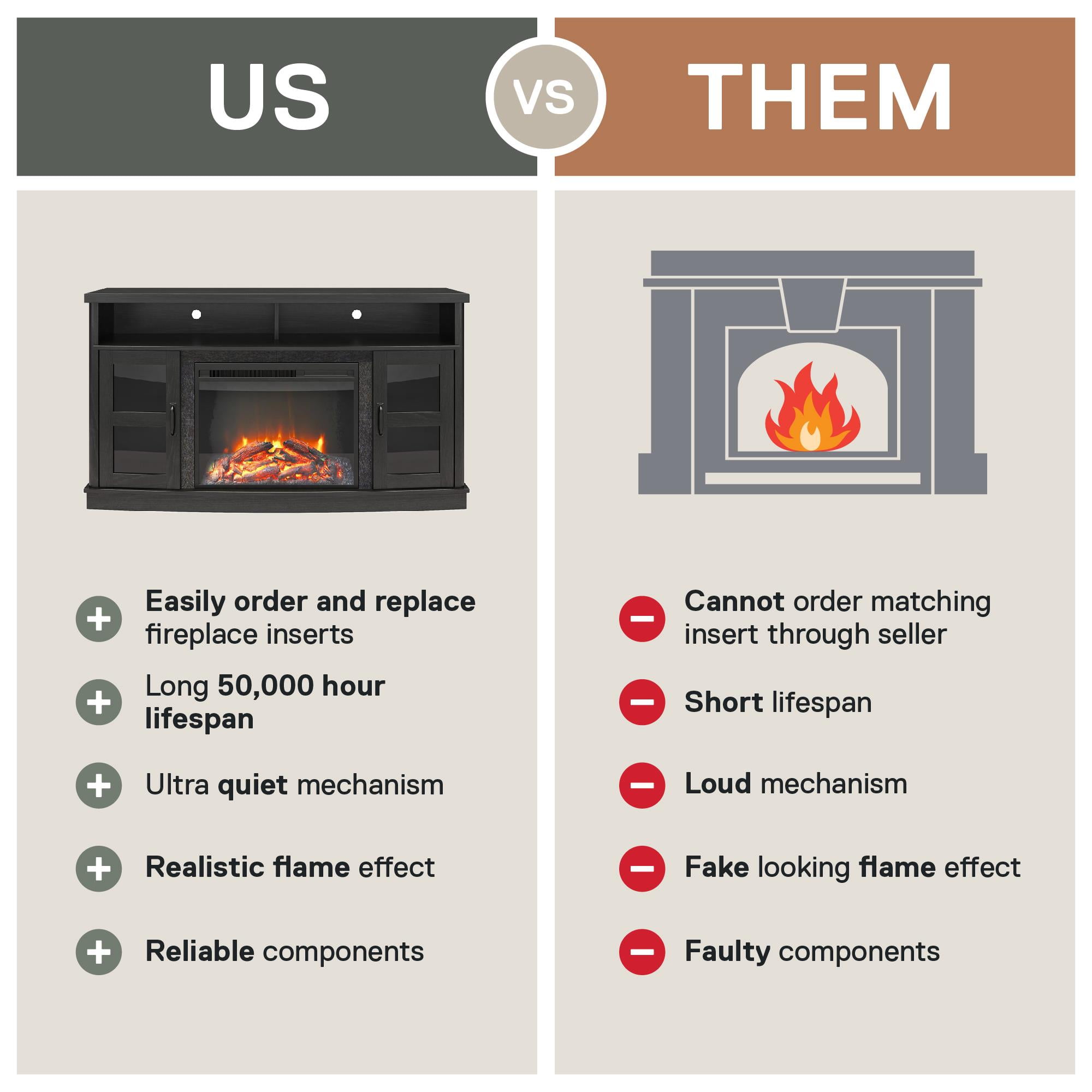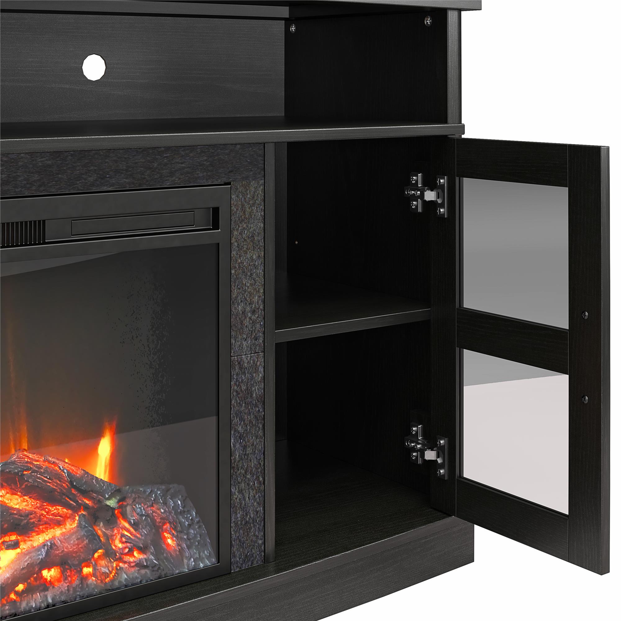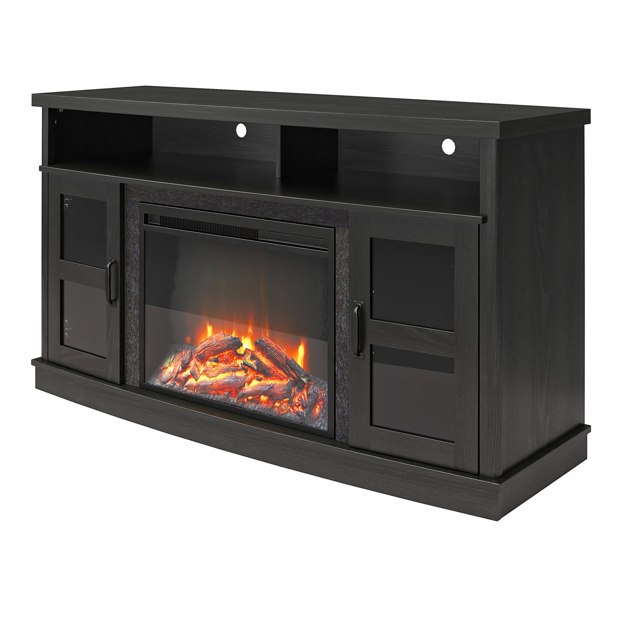 Ameriwood Home Brunswick Bay Fireplace Console with Glass Doors for TVs up to 60″, Black Oak