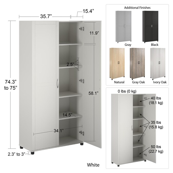 • The SystemBuild Callahan 36” Utility Storage Cabinet adds extra storage to any room