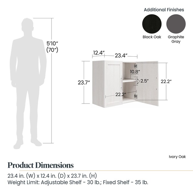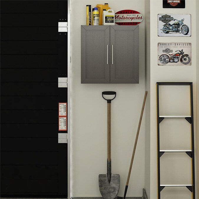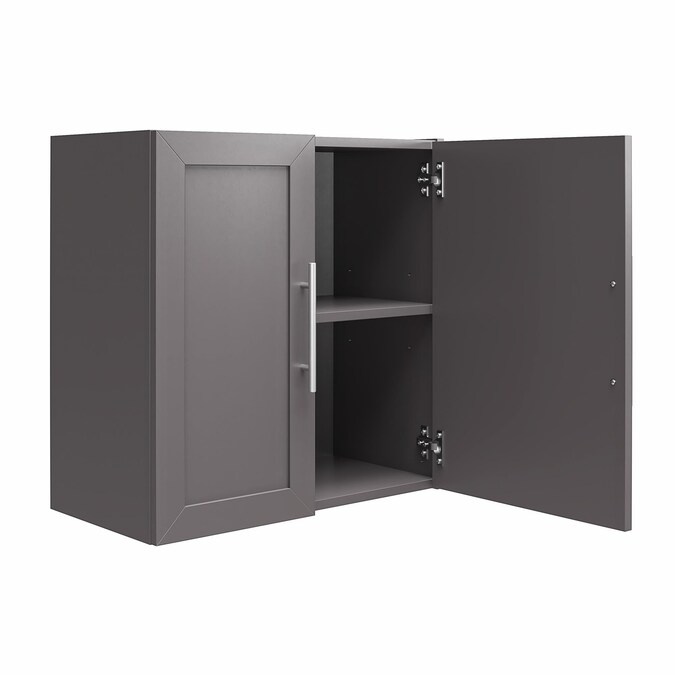 Convert unused wall space into storage with the Systembuild Evolution Camberly Framed 24” Wall Cabinet. Made of laminated MDF and particleboard, the neutral finish pairs with any décor so the cabinet can be used anywhere. The interior of this cabinet features two shelves, one adjustable so that you can space it to meet your storage needs. The EZ Hang system makes hanging that Wall Cabinet quick and easy. Simply attach and level the support bar on the wall and hook the Wall Cabinet on for a sturdy and level hang on the first try. Use this piece as a stand-alone item or combine it with additional Systembuild Evolution Camberly storage items to create the perfect storage solution for your home. The Wall Cabinet ships flat to your door and requires assembly. Two adults are recommended to assemble. Once assembled, the Wall Cabinet measures 23.68”H x 23.43”W x 12.36”D.