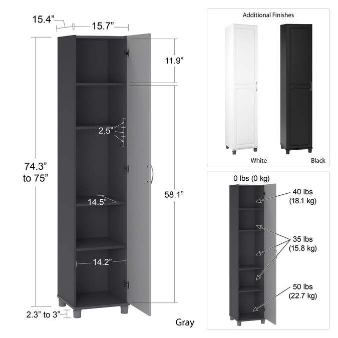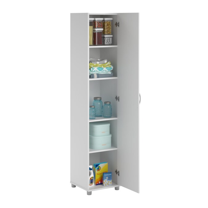 - The SystemBuild Kendall 16” Utility Storage Cabinet adds extra storage to any room